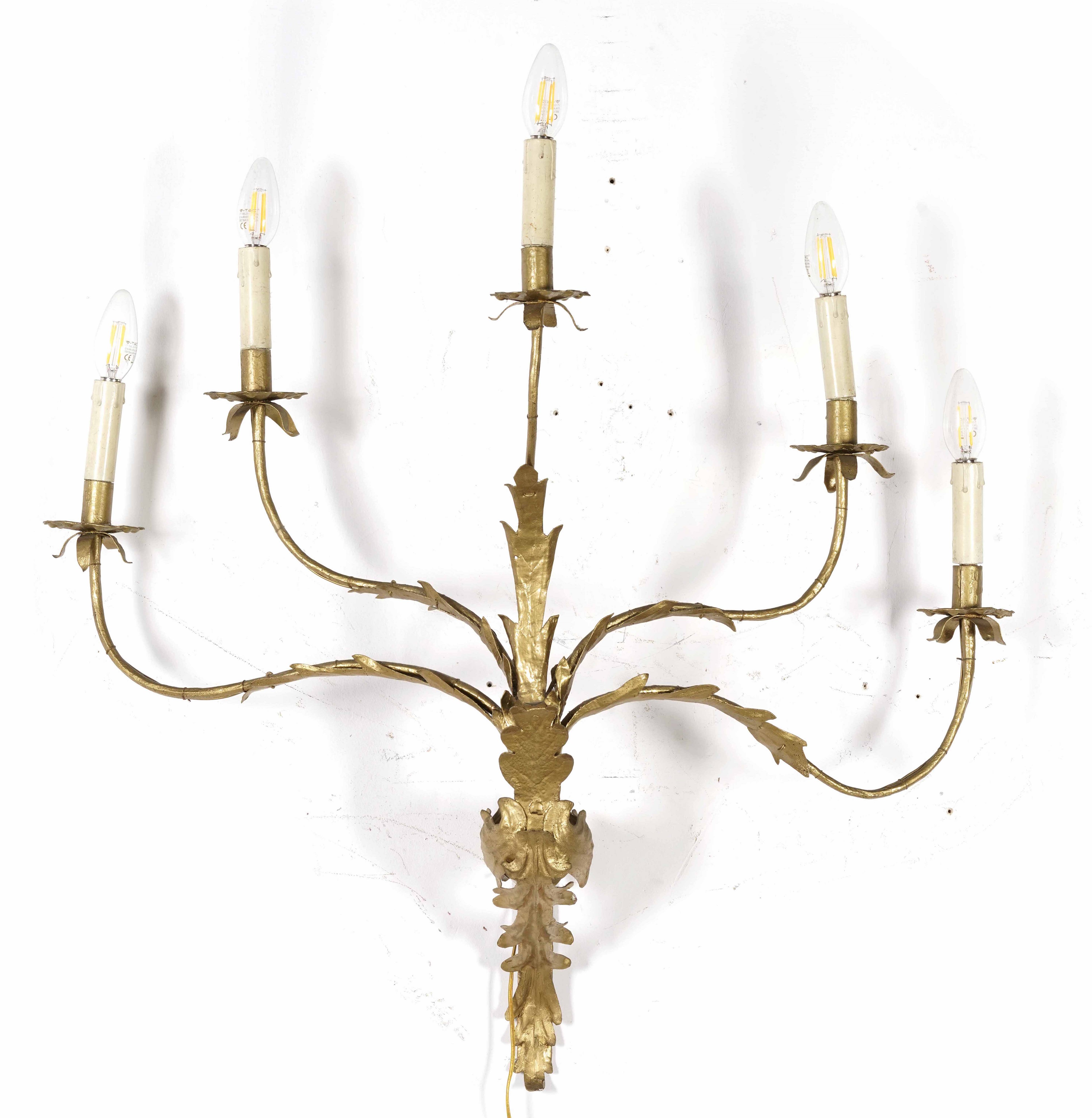 Applique a cinque luci in lamierino dorato. XIX secolo