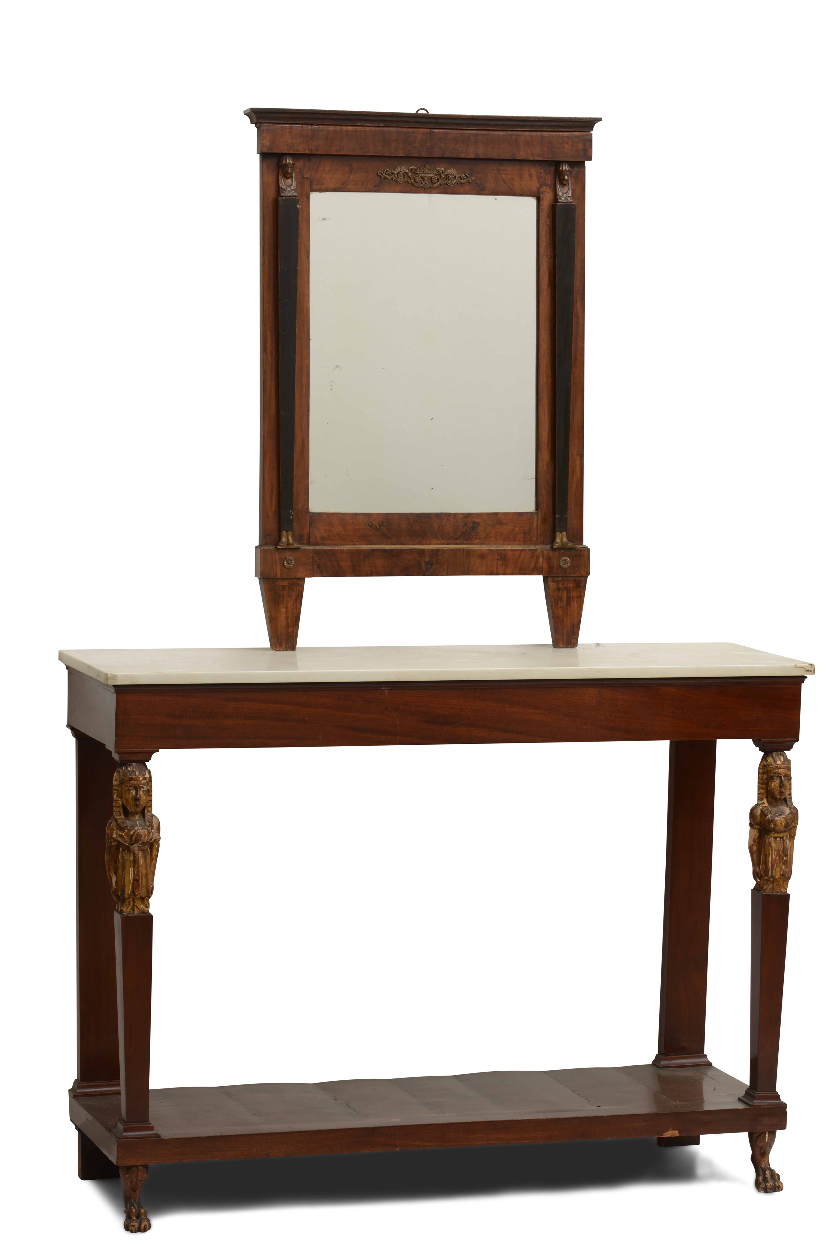 Console con specchiera in legno intagliato, XIX-XX secolo