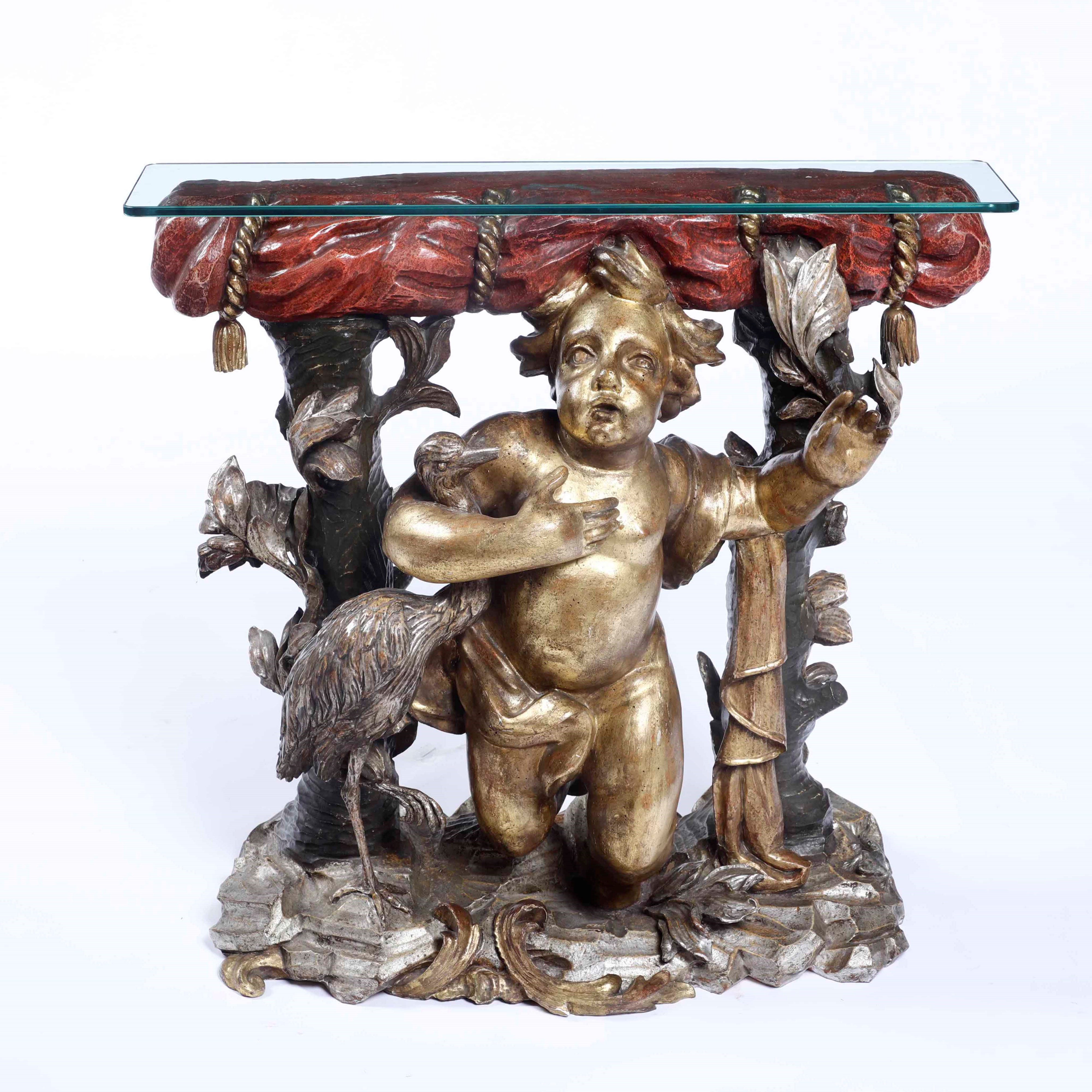 Consolina in legno intagliato, dipinto e dorato, XVIII-XIX secolo