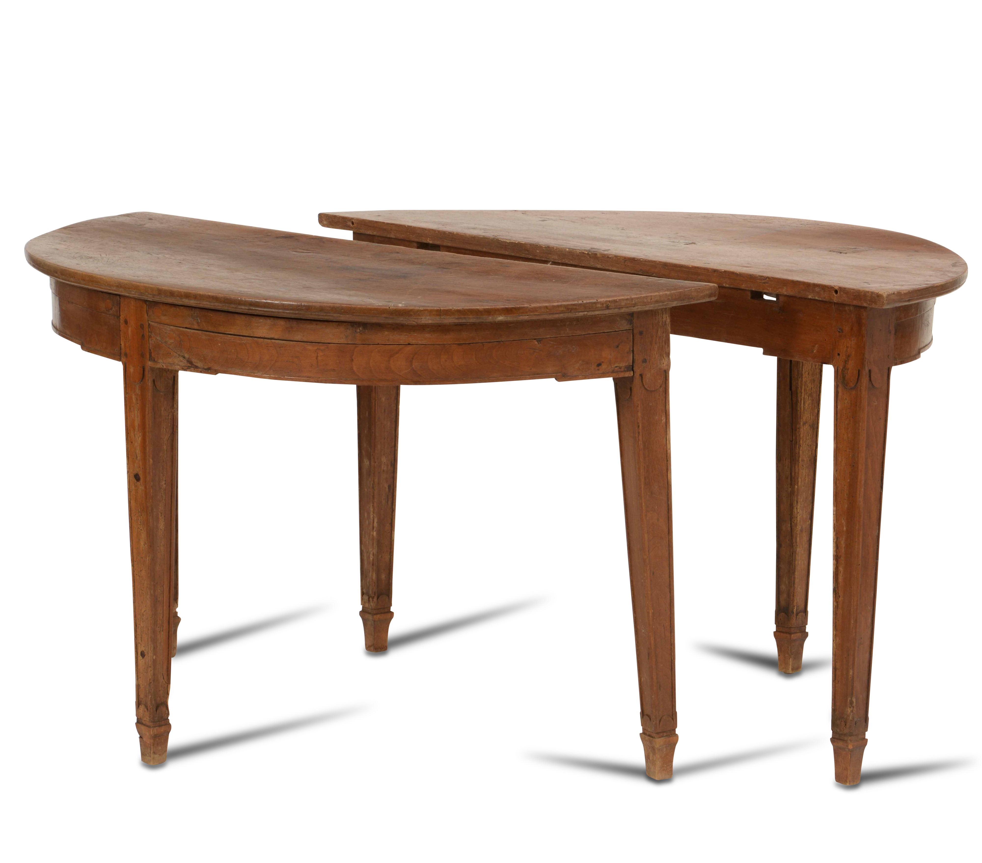 Coppia di mezzi tavoli in noce, XIX secolo