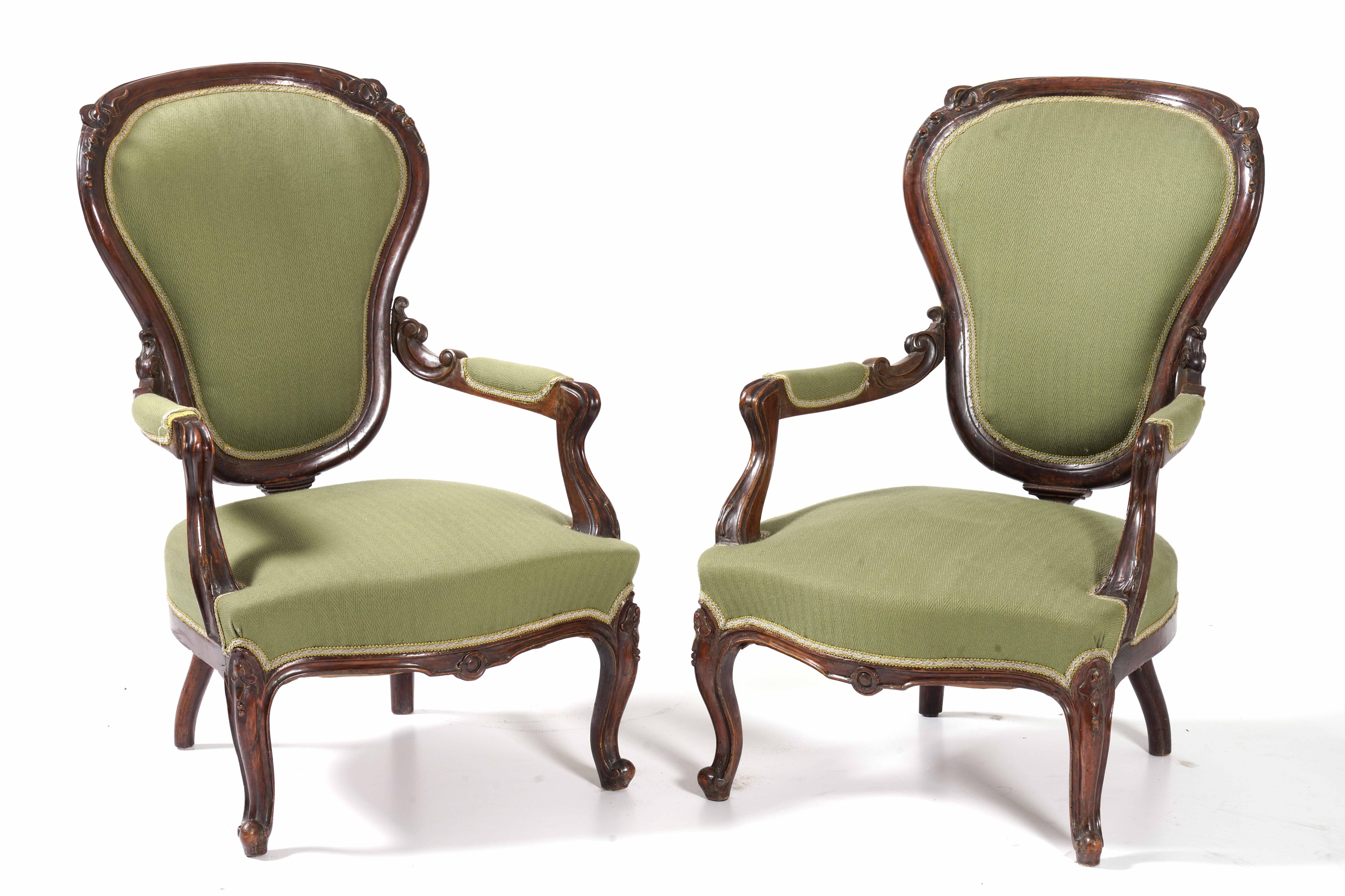 Coppia di poltrona in legno intagliato. XIX-XX secolo