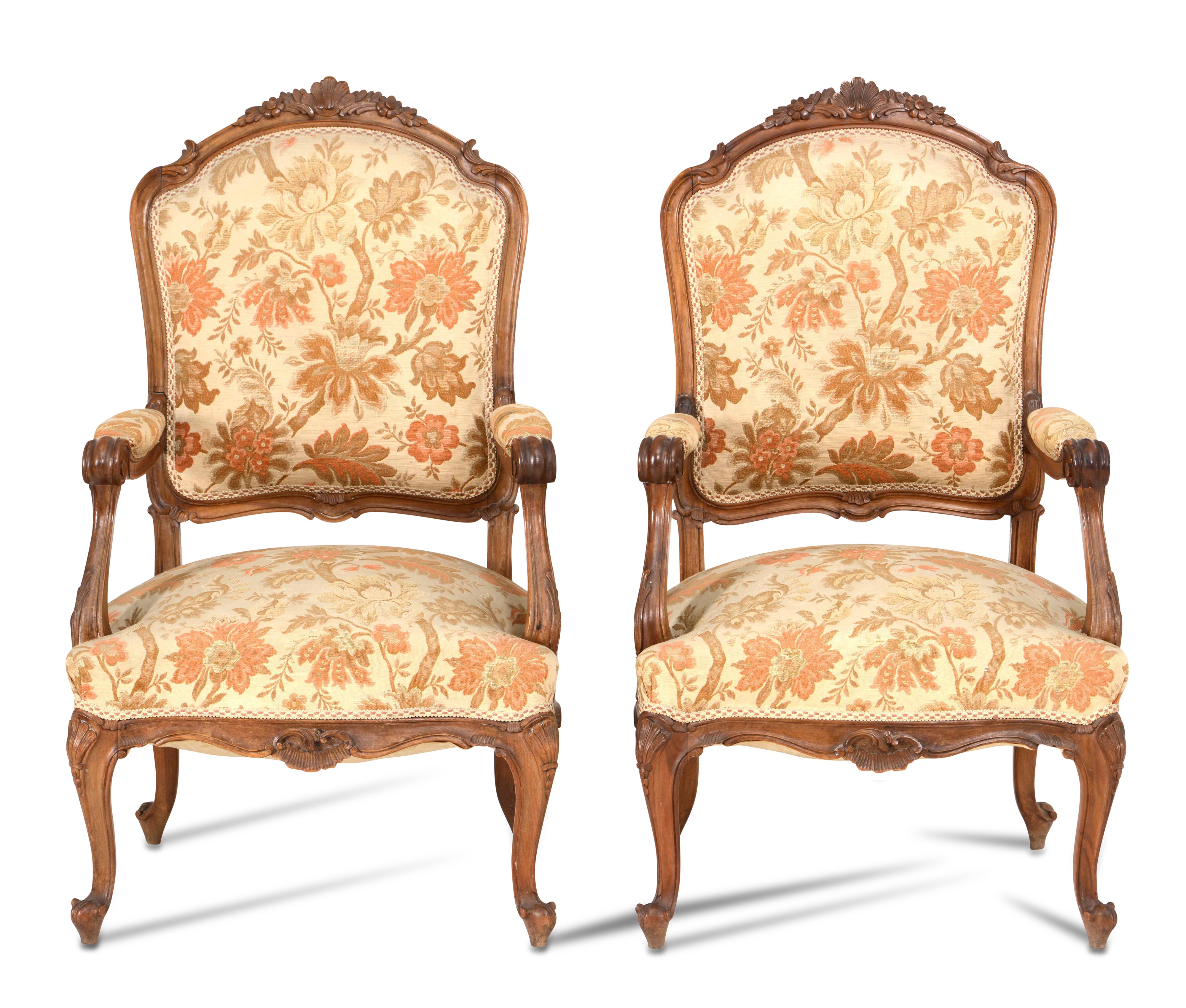 Coppia di poltrone in legno intagliato. Francia, stile Luigi XV