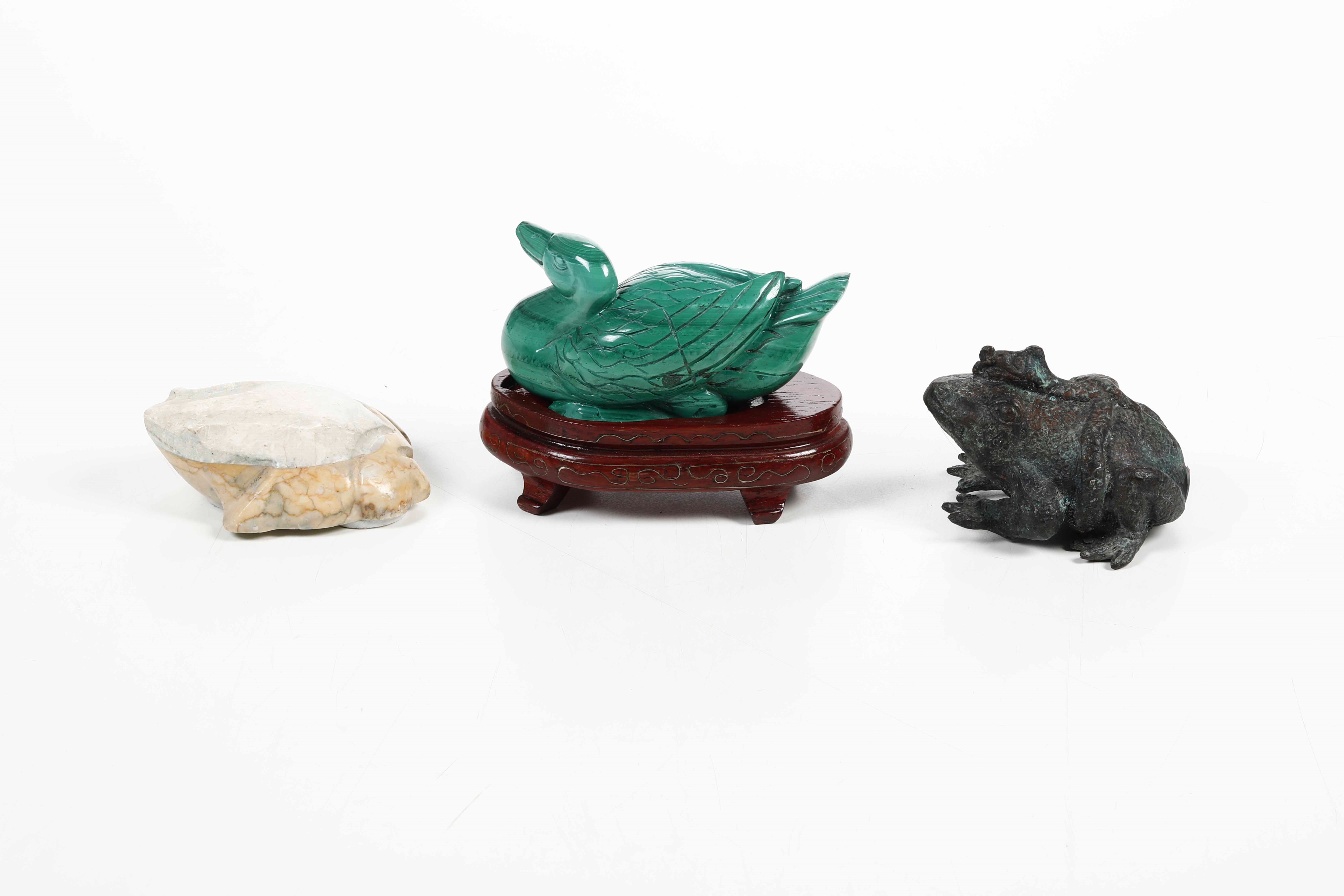 Due rane e una papera in malachite