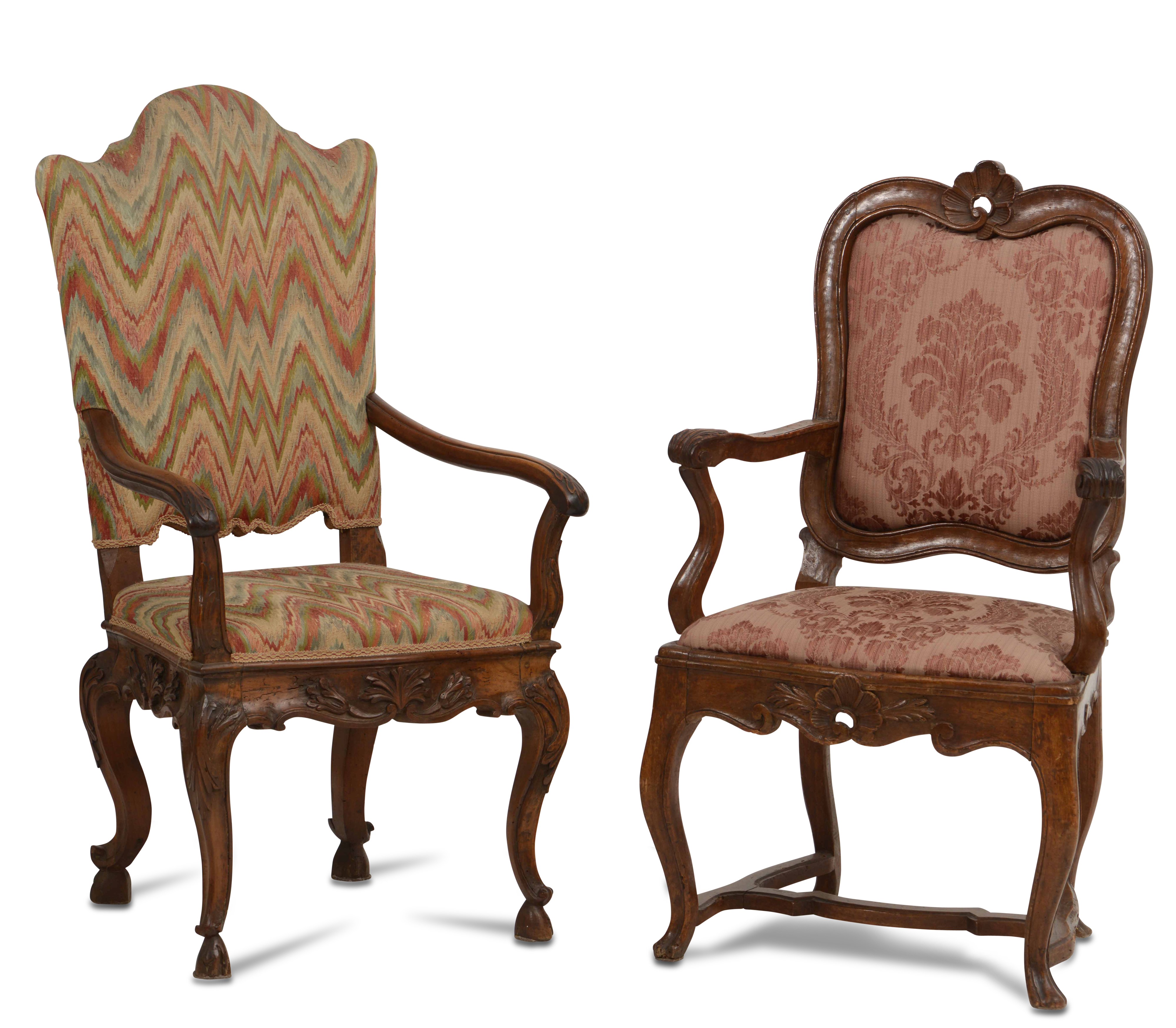 Lotto di due poltrone Luigi XV in legno intagliato