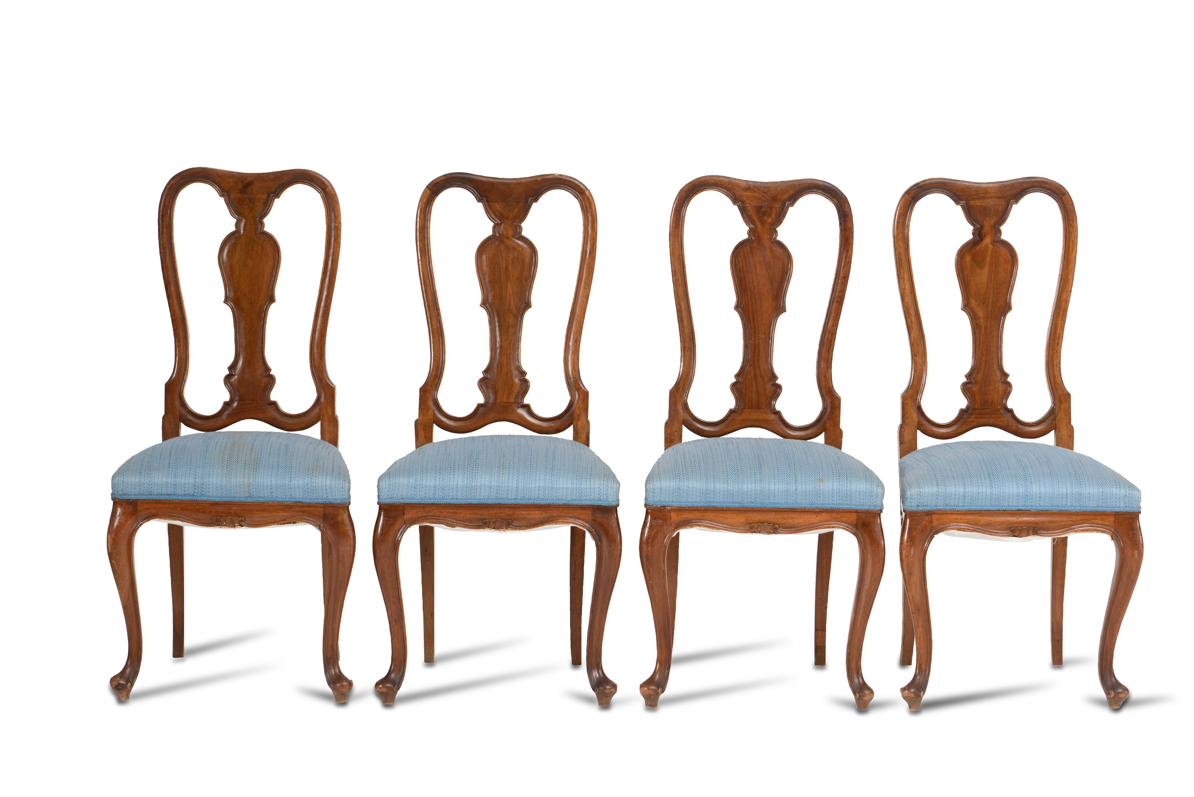 Otto sedie in noce ,con schienale a cartella. Stile XVIII secolo