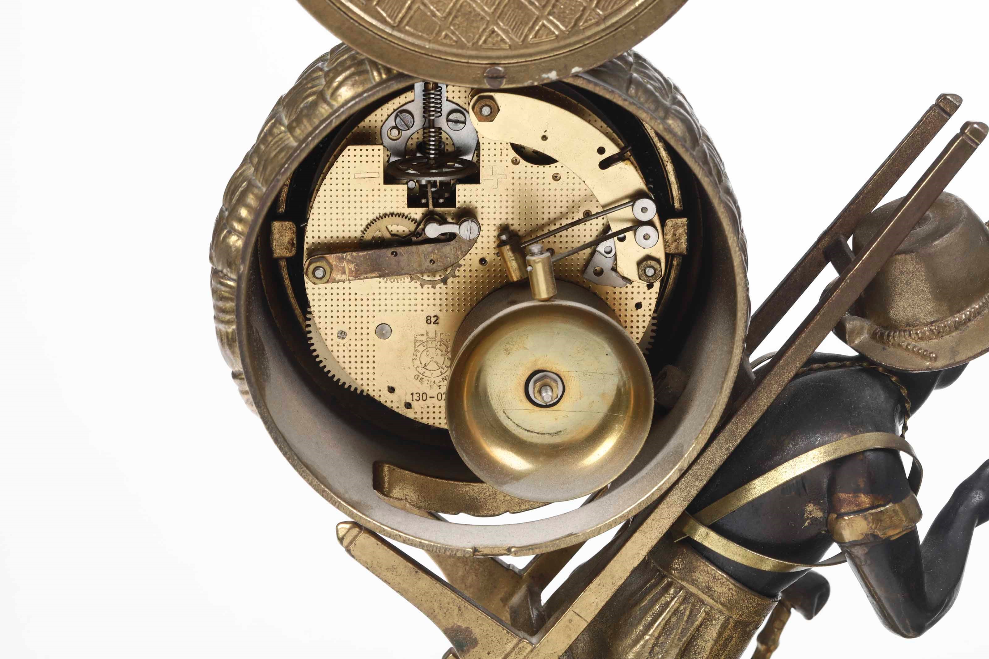 Pendola da tavolo in bronzo dorato e patinato. Italia XX secolo