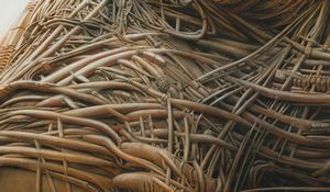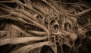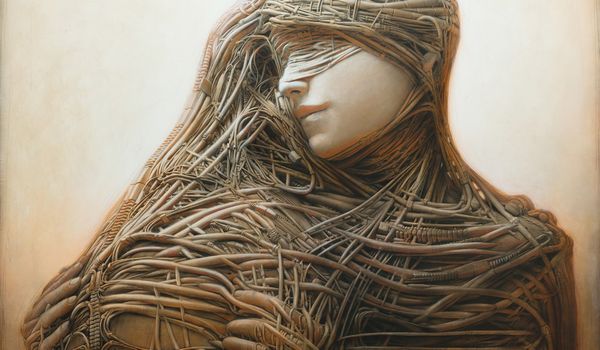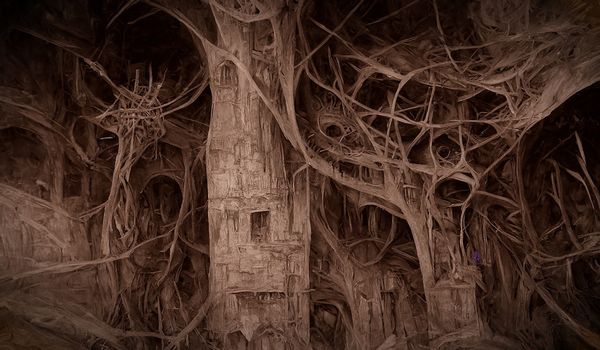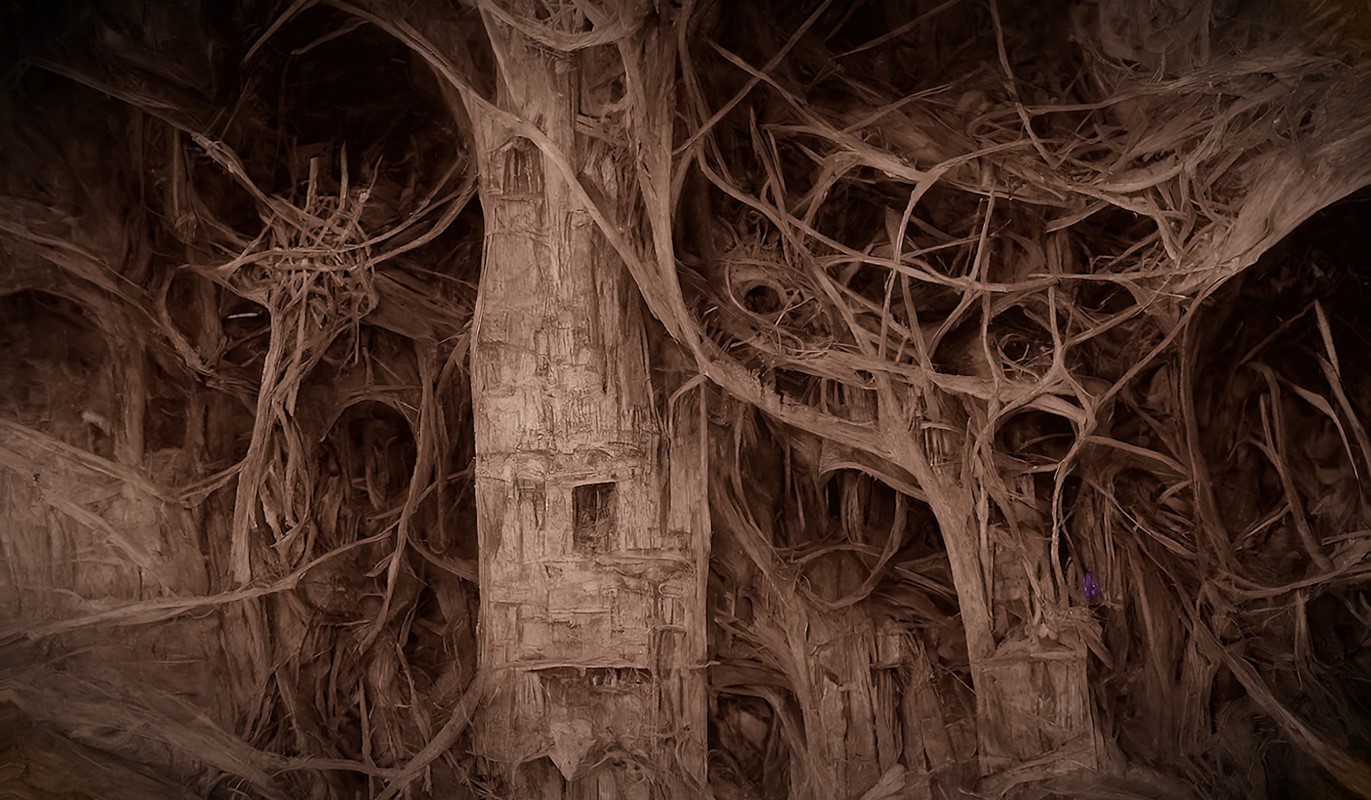 Un viaggio reso dall'IA (Intelligenza Artificiale) nel dipinto di Peter Gric Allegato II del 2017 (acrilici su tela, 100 x 120 cm). Ha guidato la Disco Diffusion AI con diversi messaggi di testo consecutivi per guidare la trasformazione nella direzione desiderata.