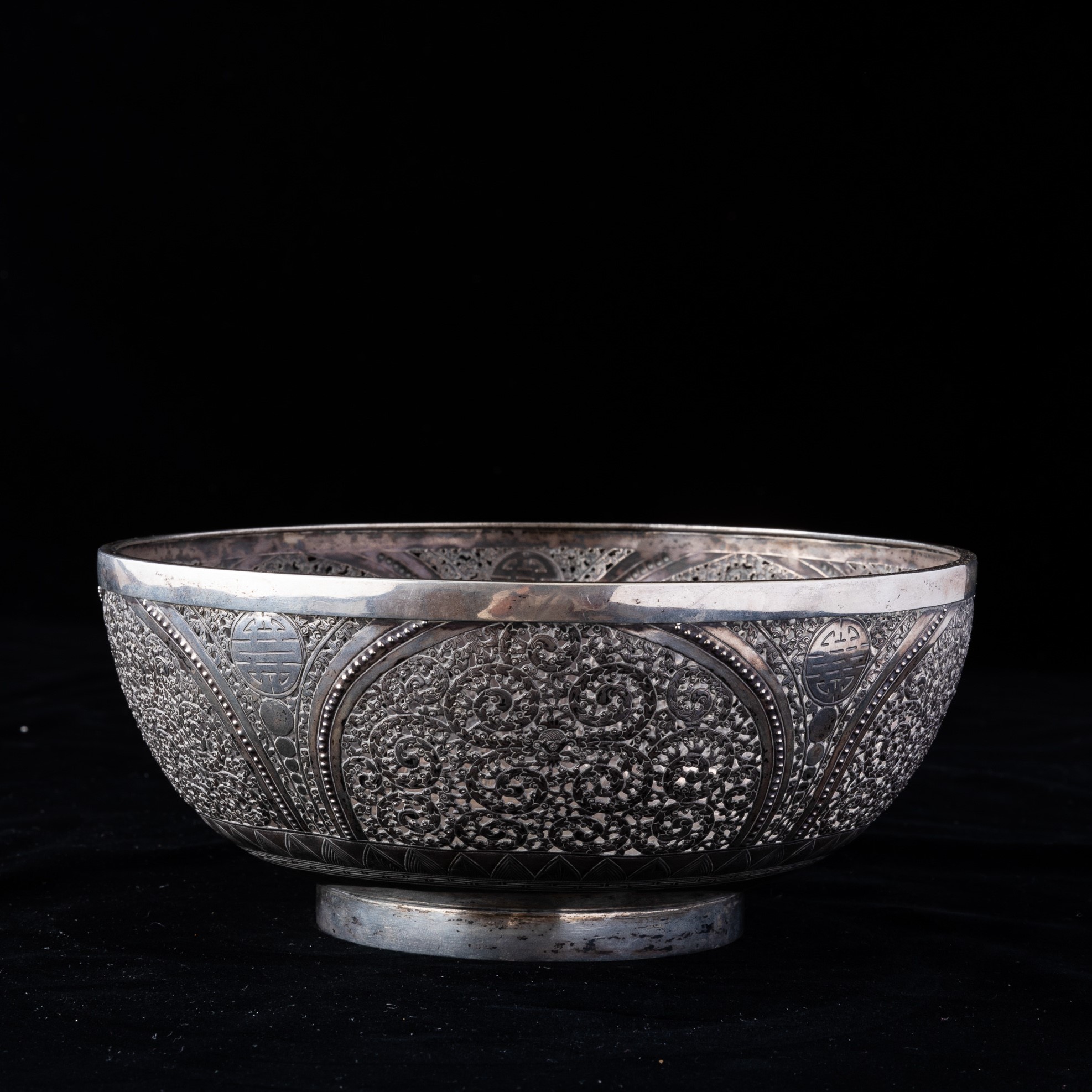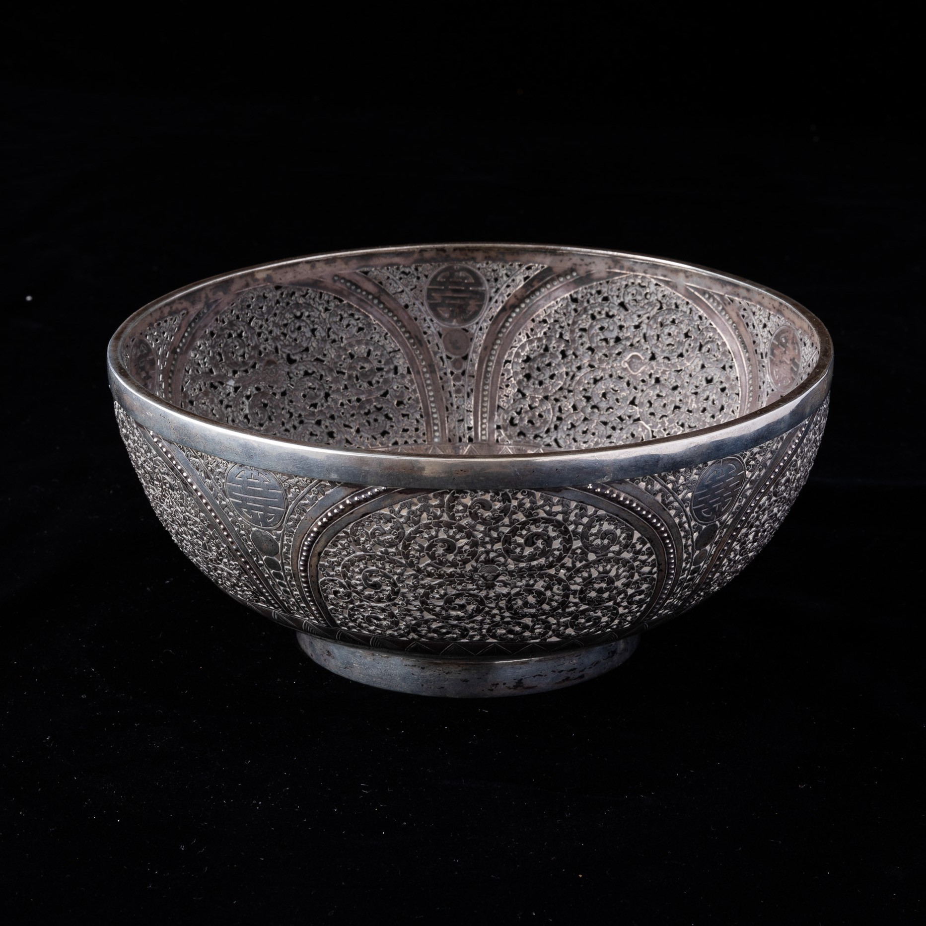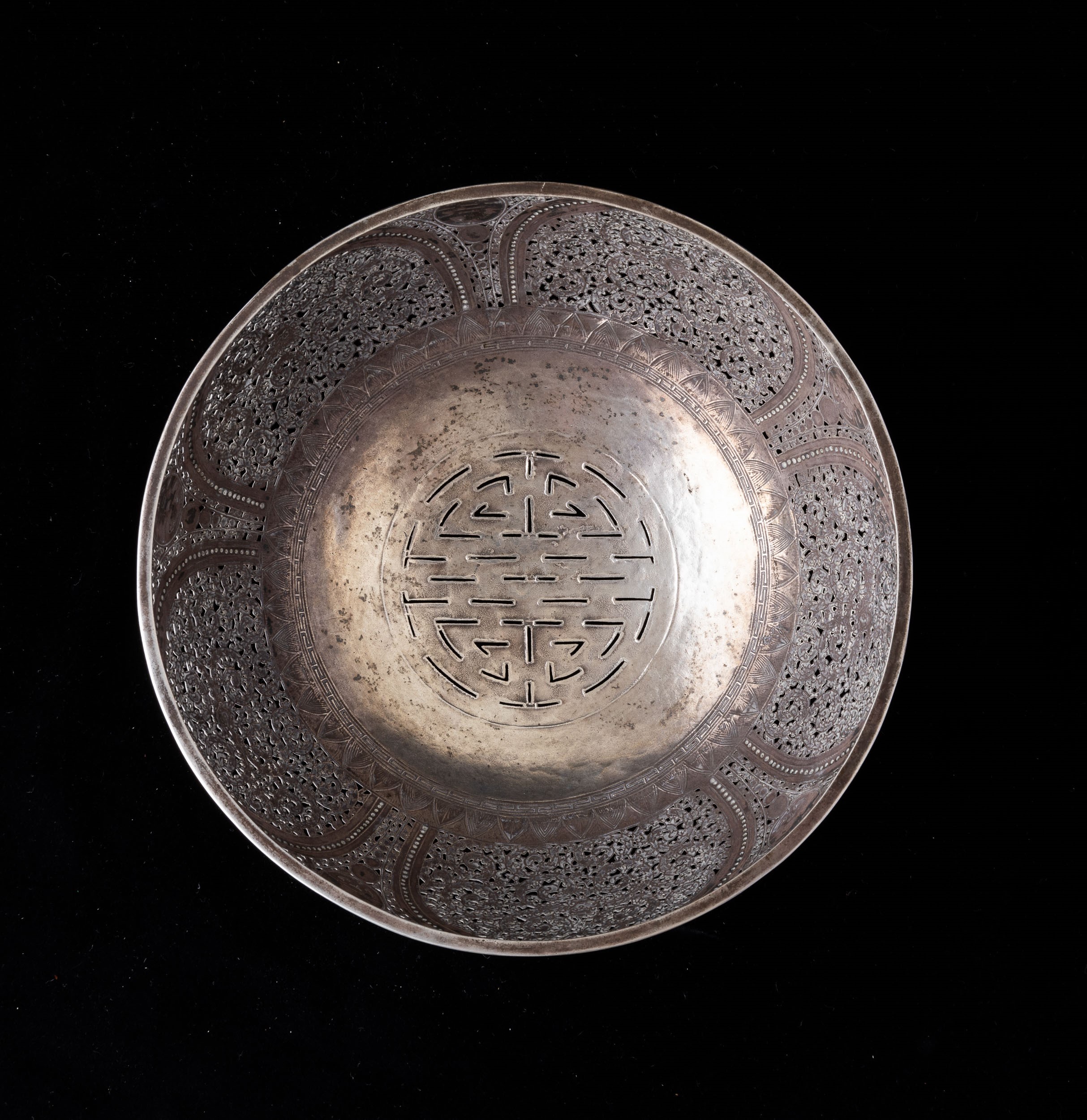 Ciotola in argento con decori incisi e a trafori raffiguranti racemi vegetali e [..]