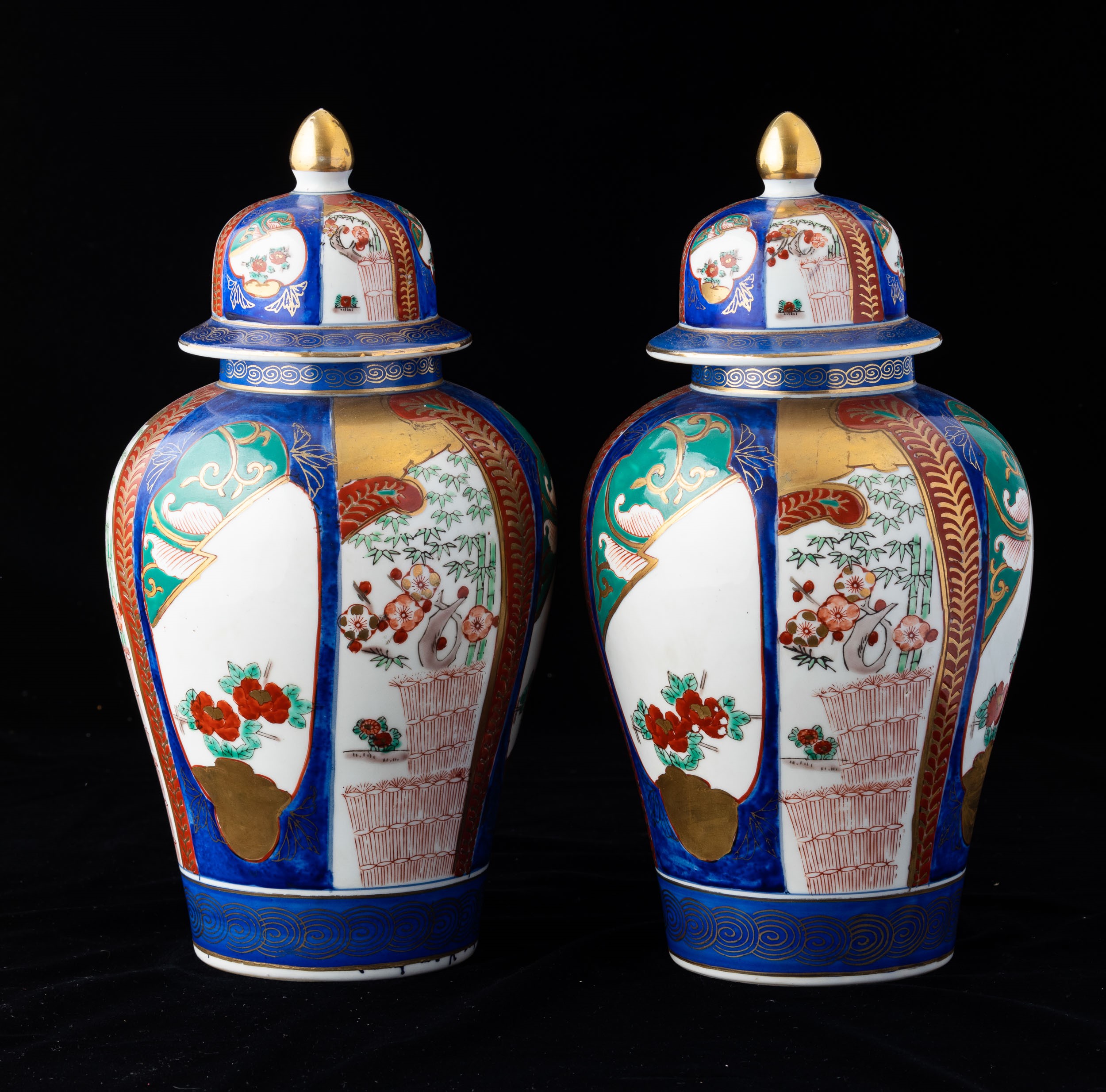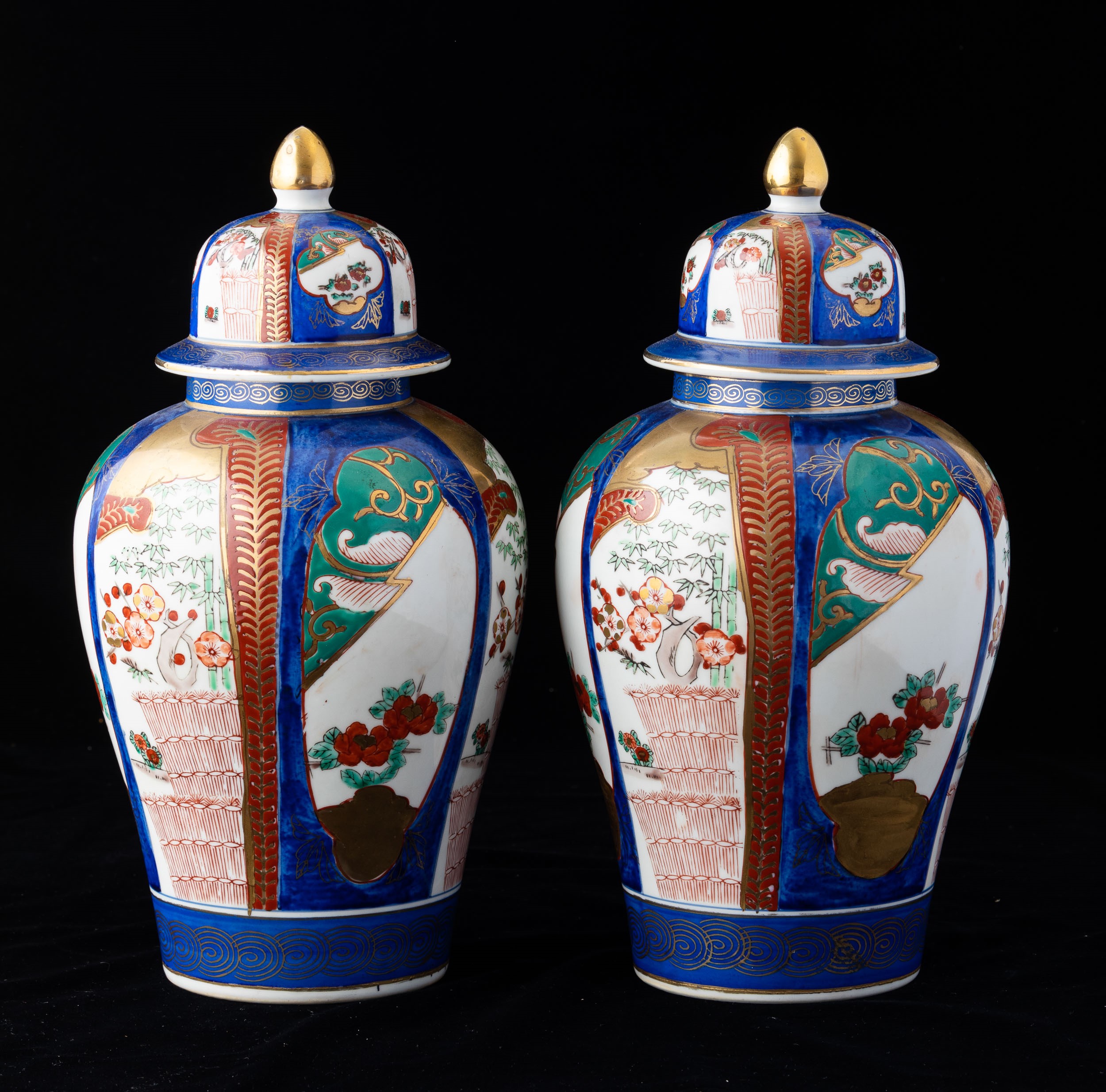 Coppia di potiches in porcellana con soggetti naturalistici entro riserve, Cina, [..]