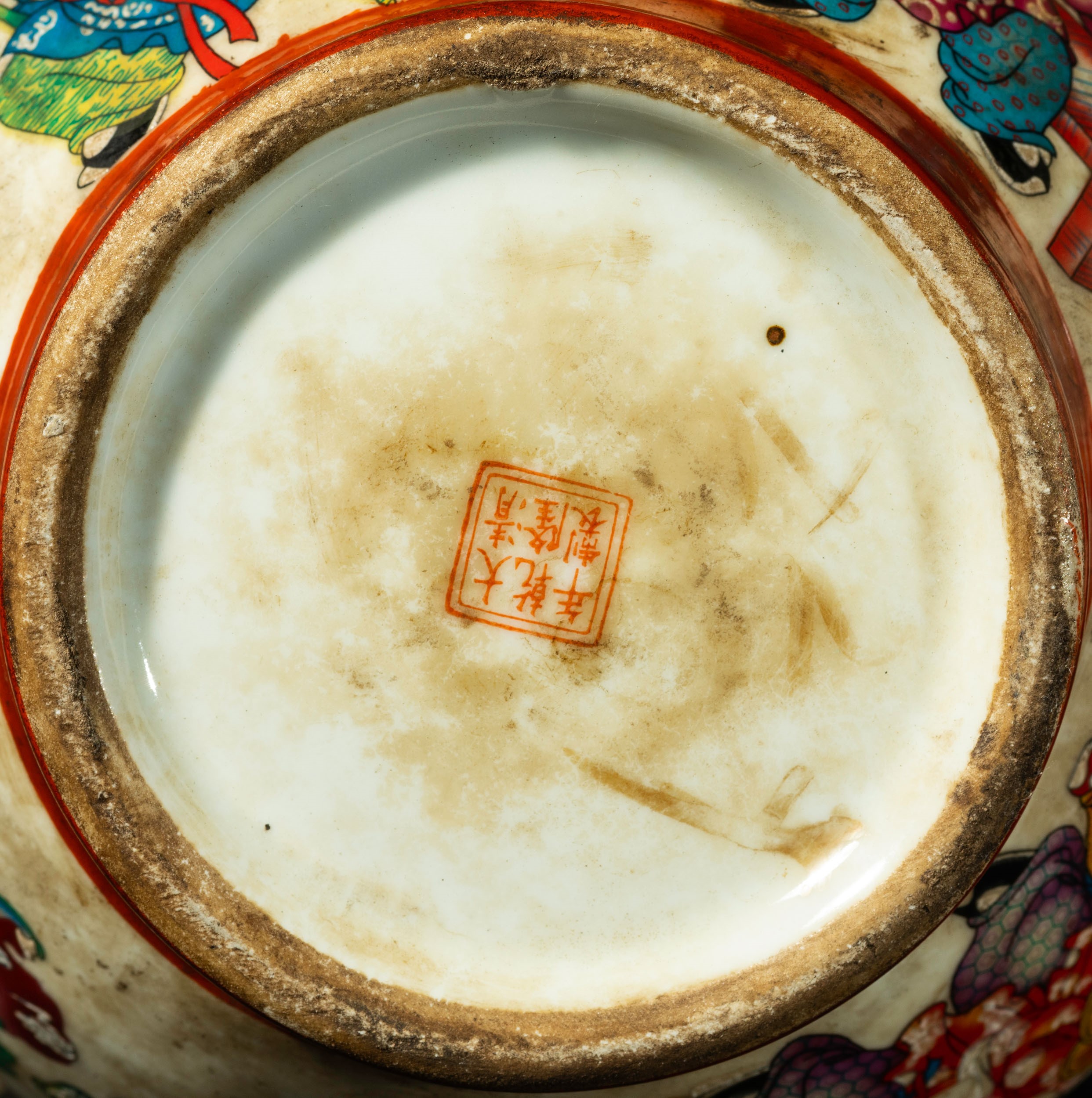 Coppia di vasi a doppia zucca in porcellana a smalti policromi con figure di fanciulli, [..]