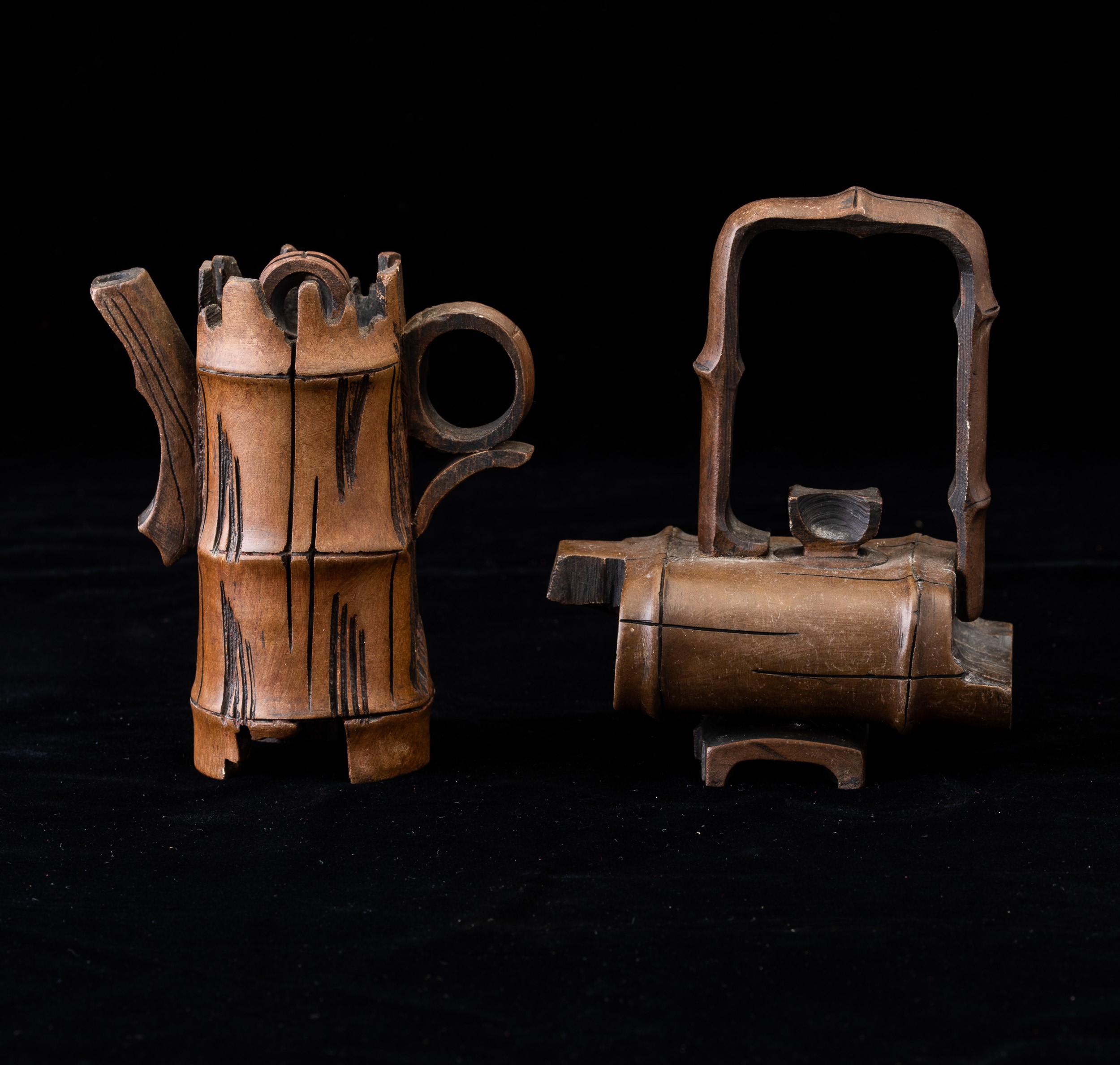 Due teiere in pietra con motivo a canne di bambù, Cina, XX secolo