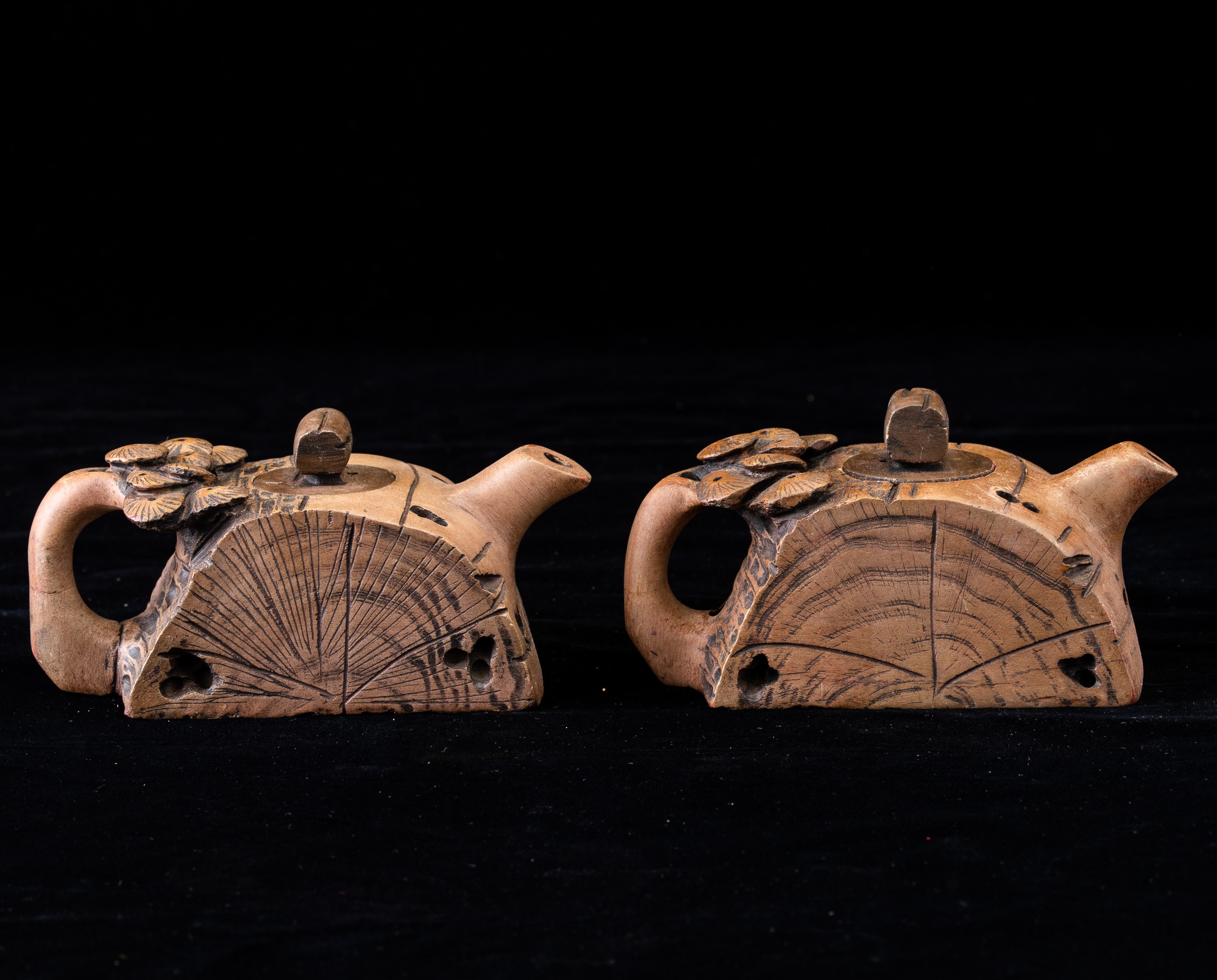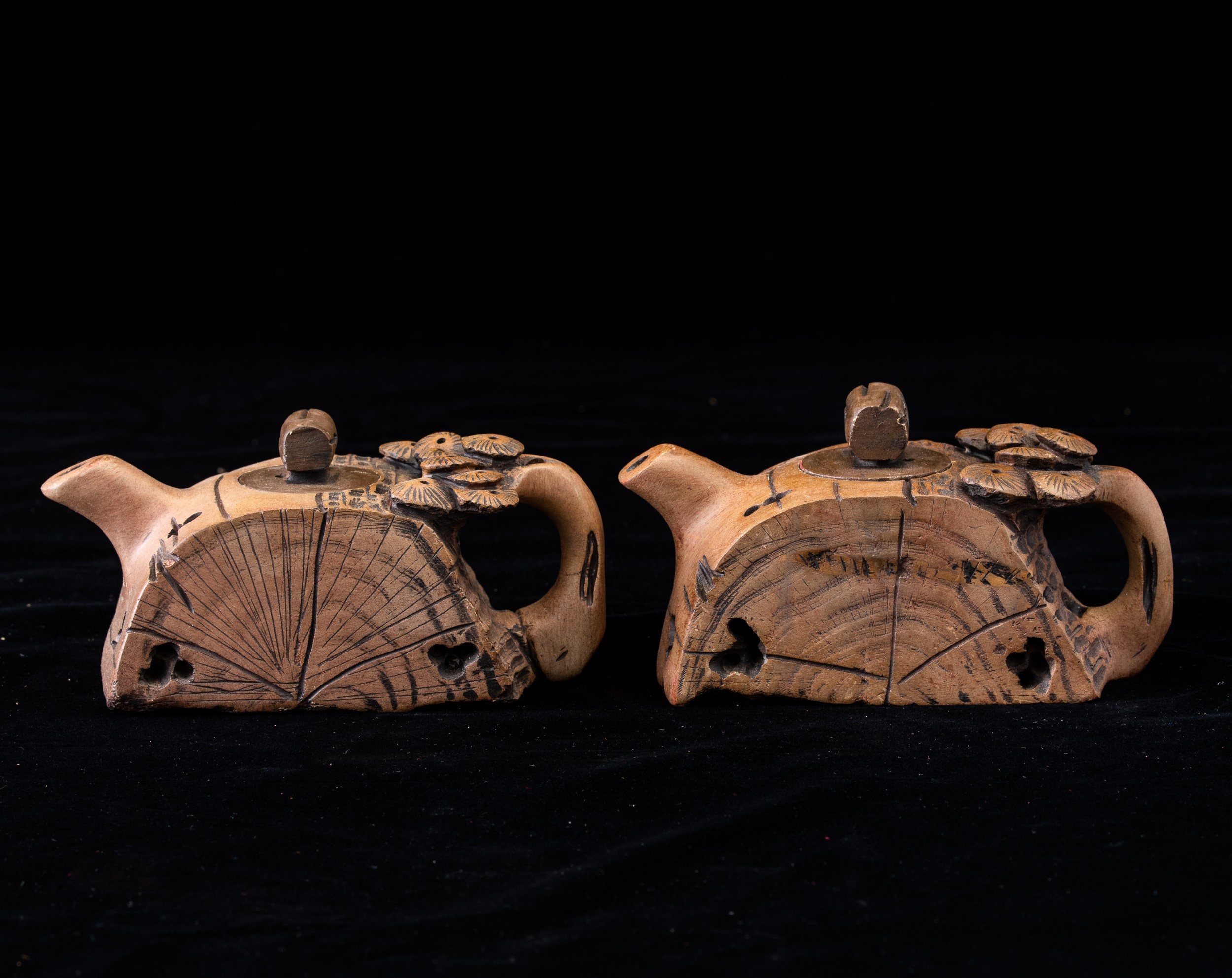 Due teiere in pietra con motivo finto legno, Cina, XX secolo