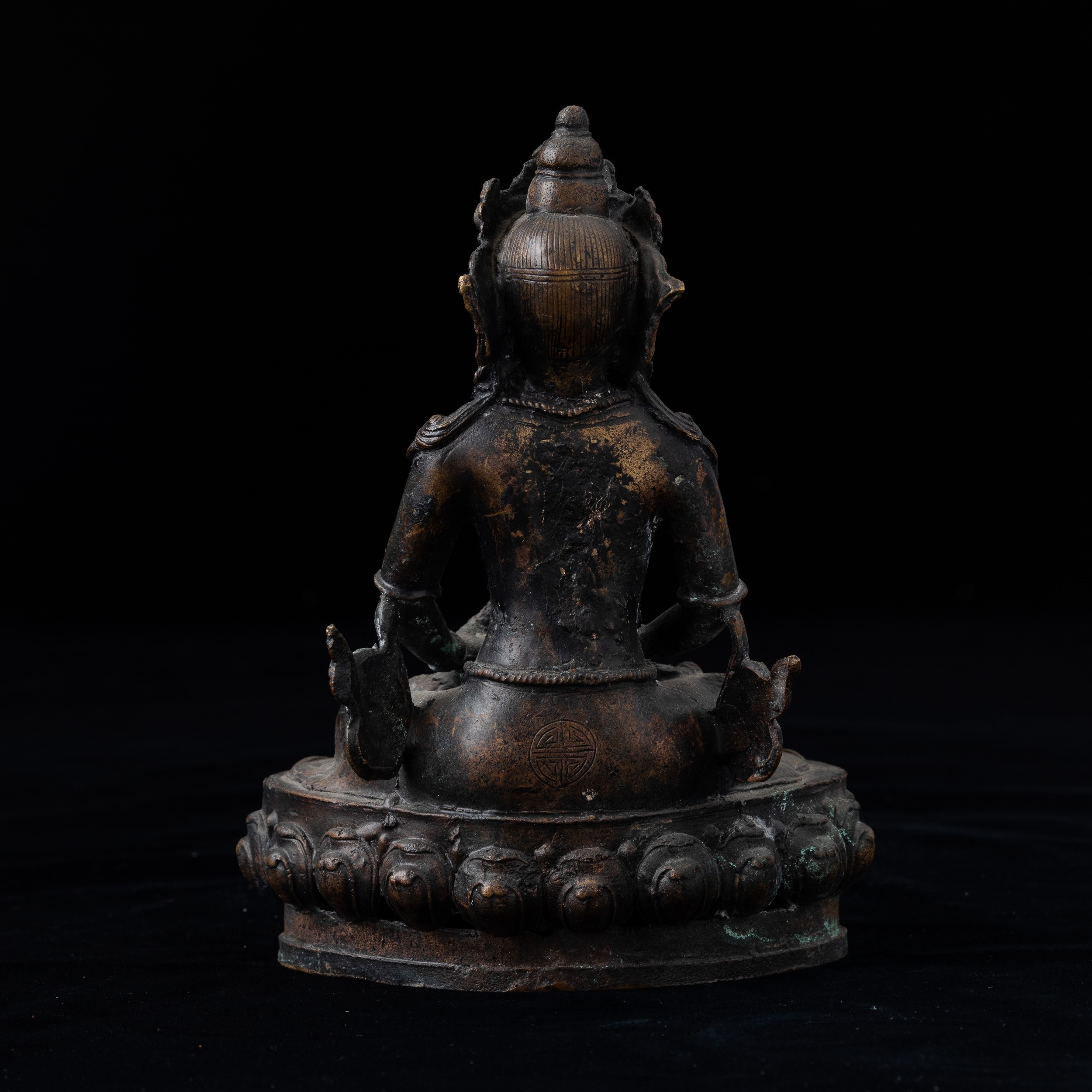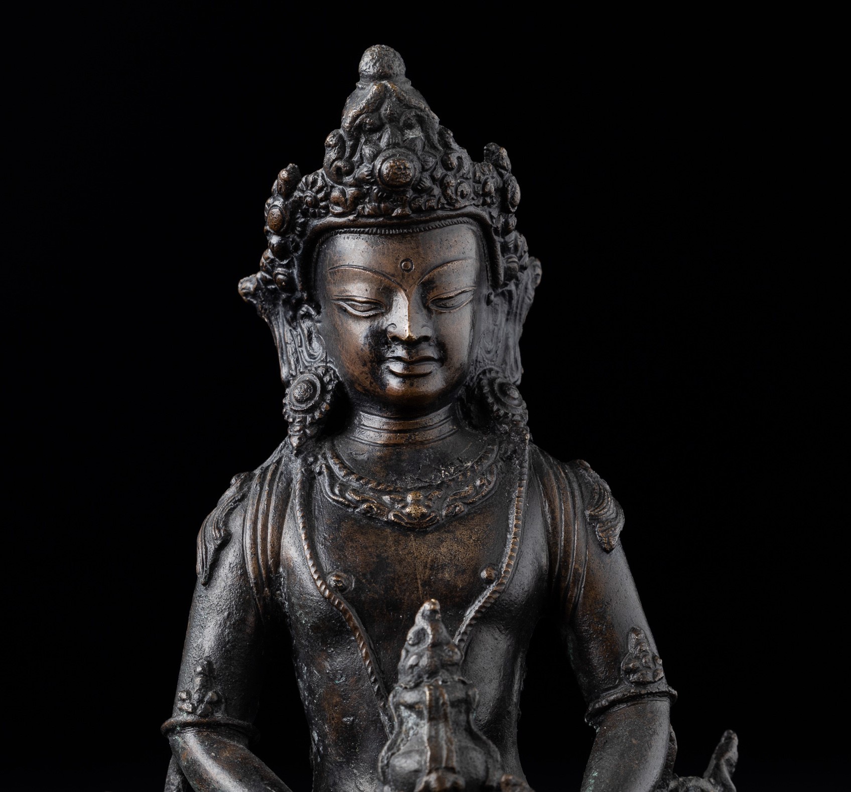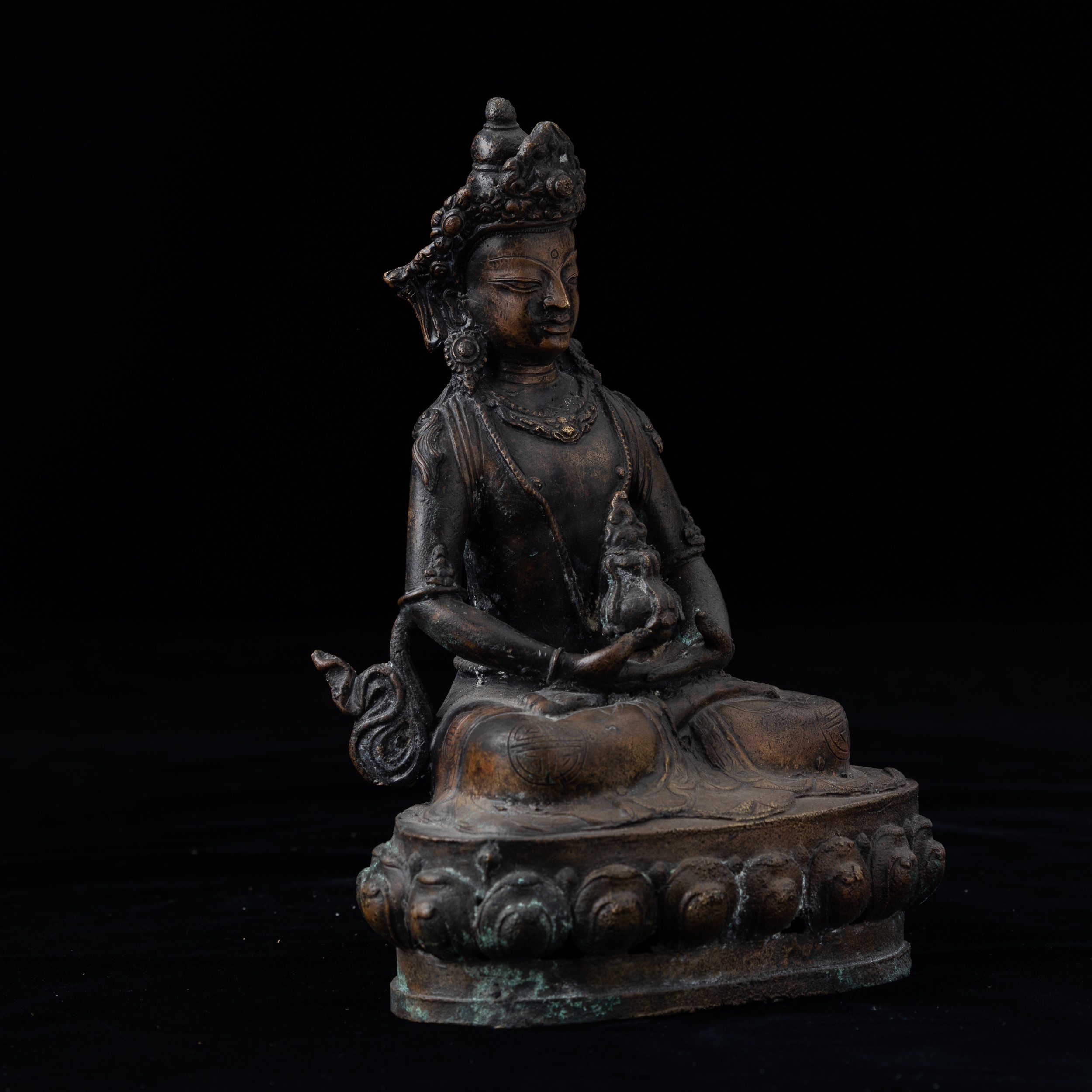 Figura di Avalokitesvara in bronzo seduta su fiore di loto, Tibet, XIX secolo