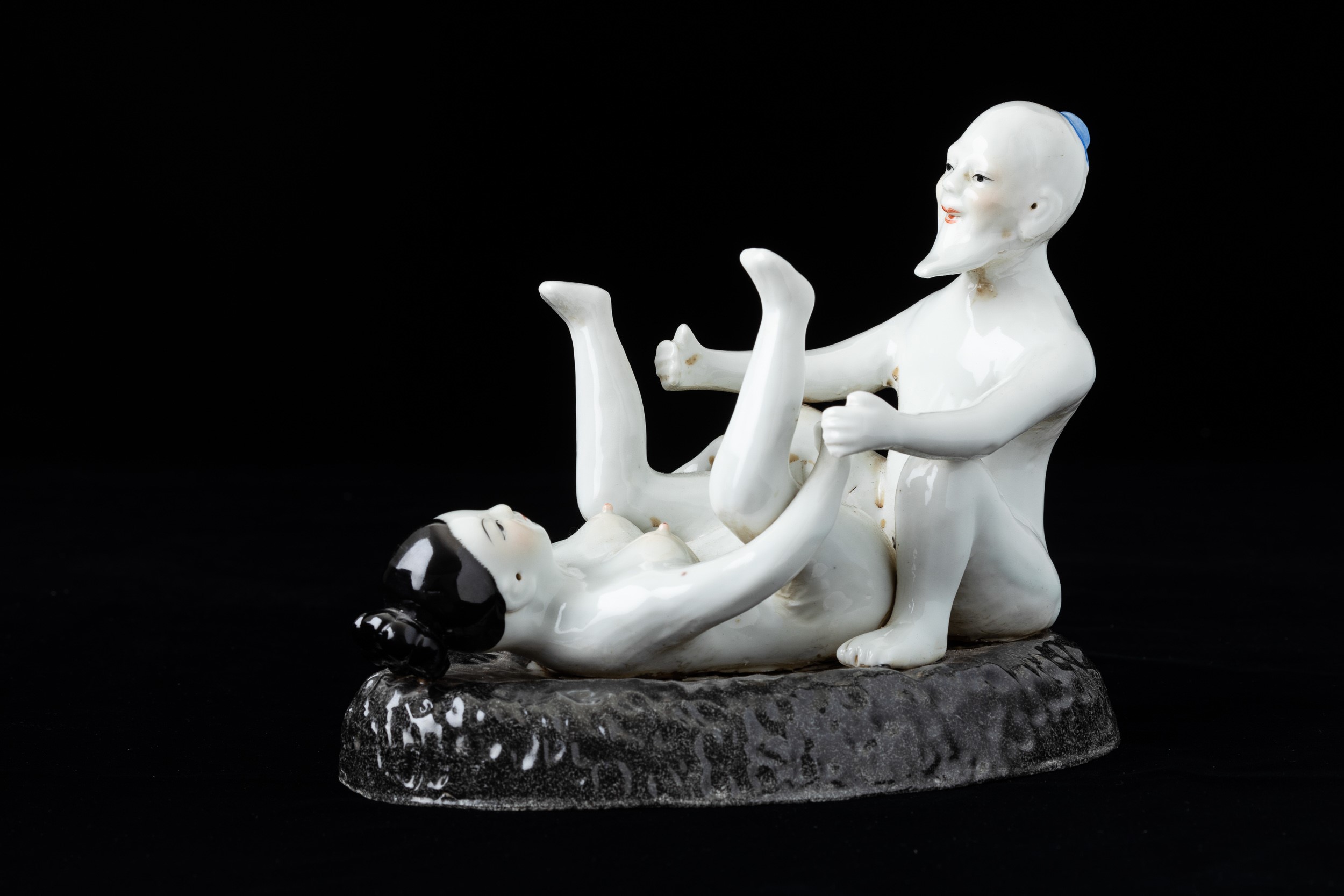 Gruppo in porcellana raffigurante scena erotica, Cina, Dinastia Qing, XIX secolo