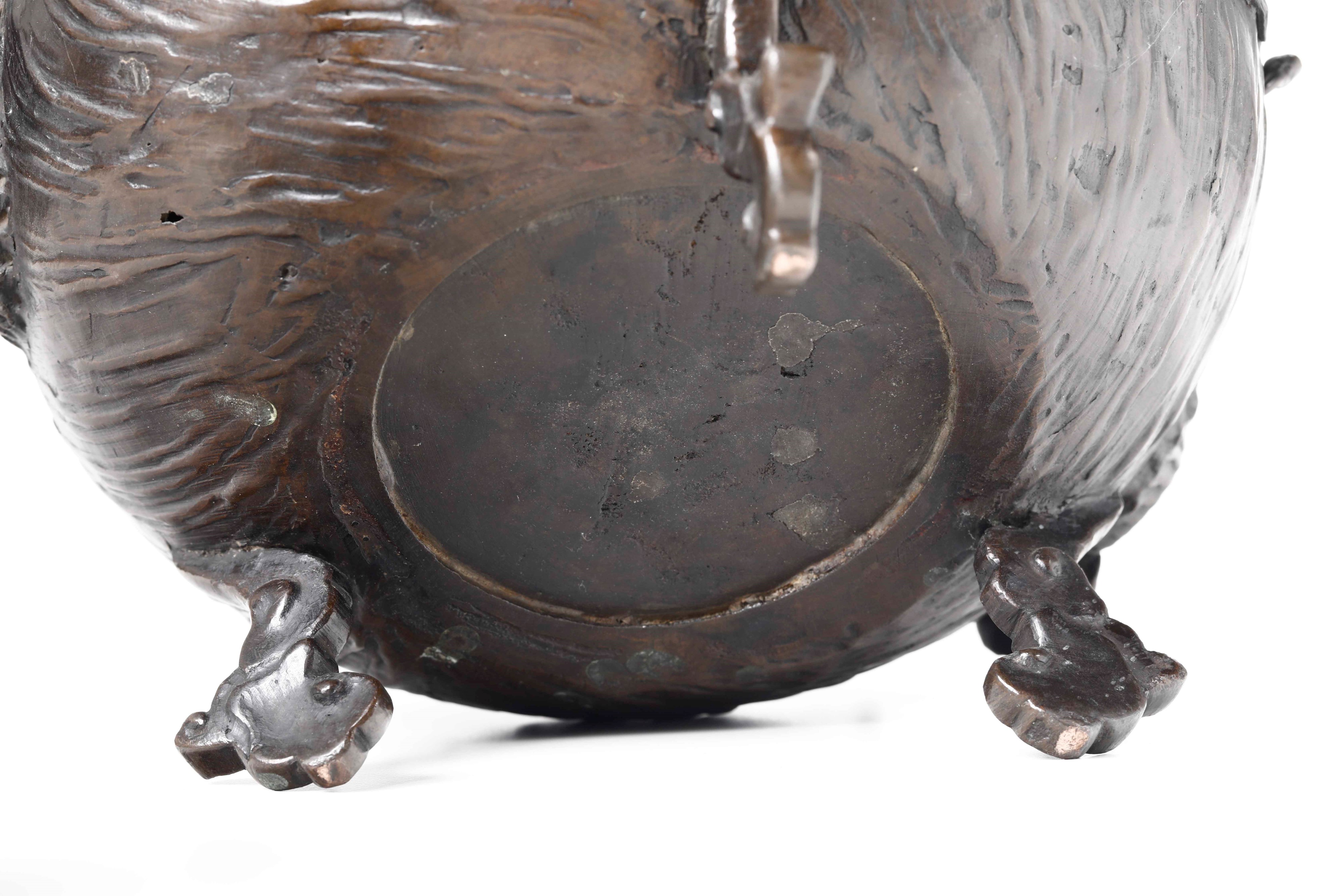 Incensiere in bronzo con anse sagomate, figura di drago a rilievo e con presa del [..]