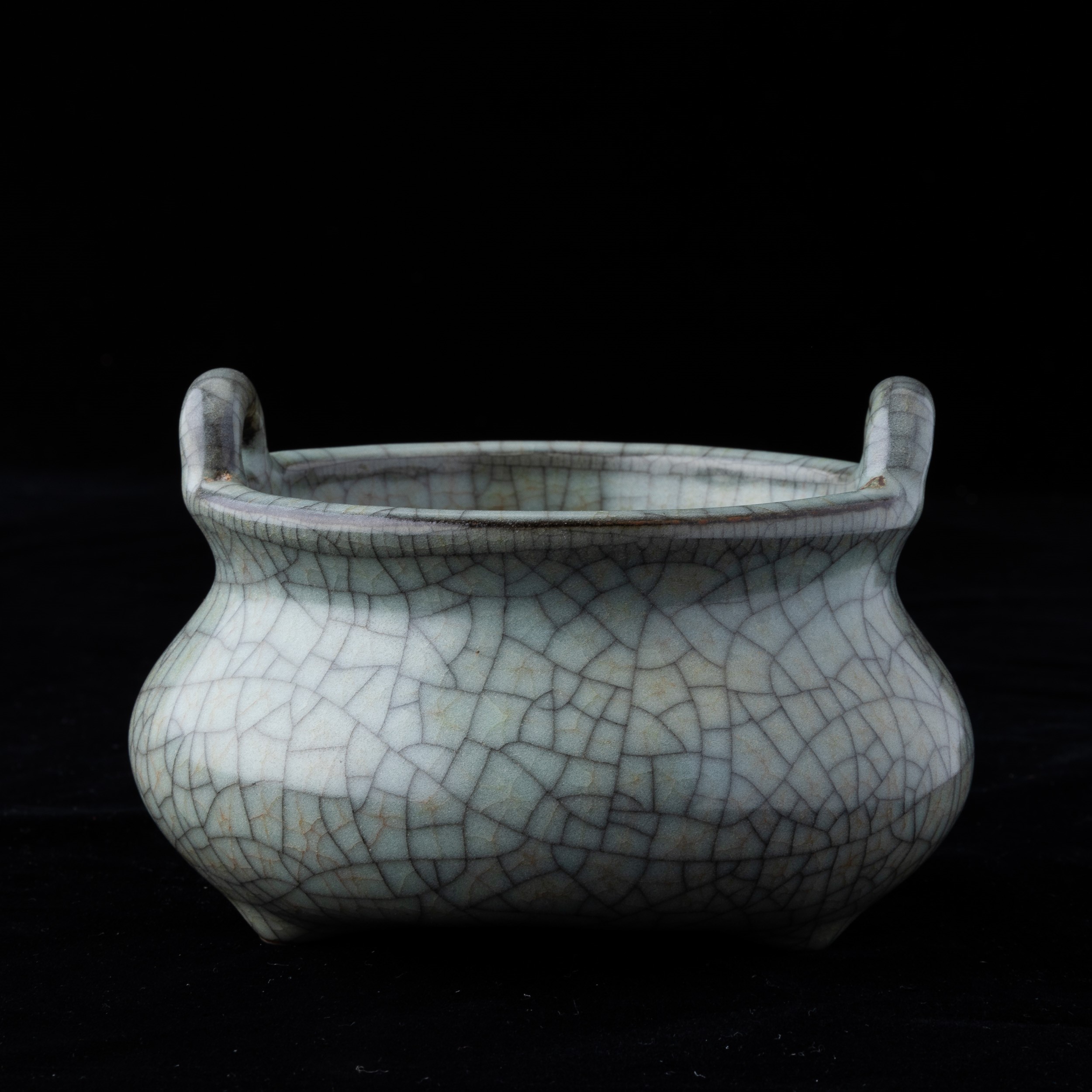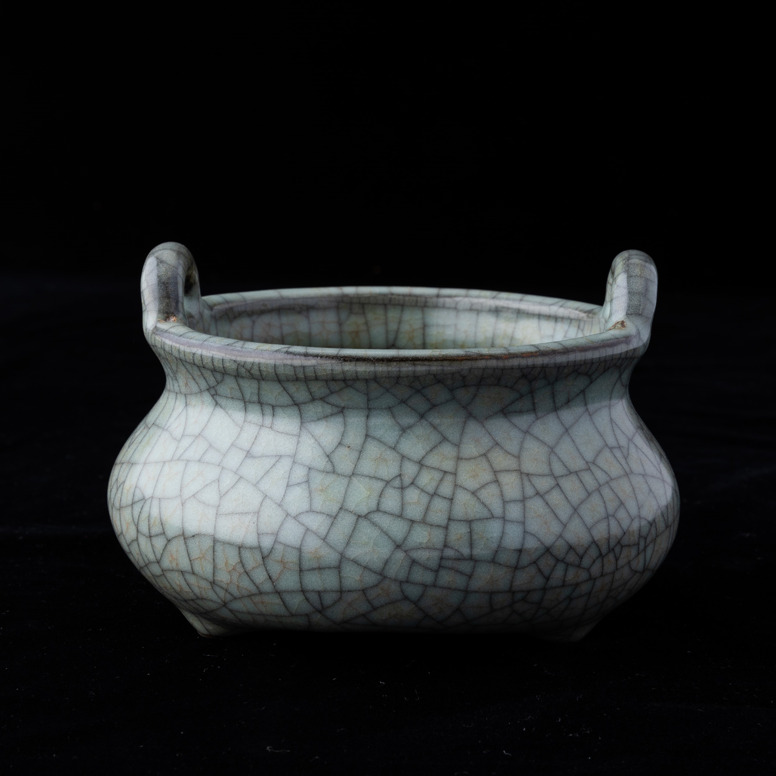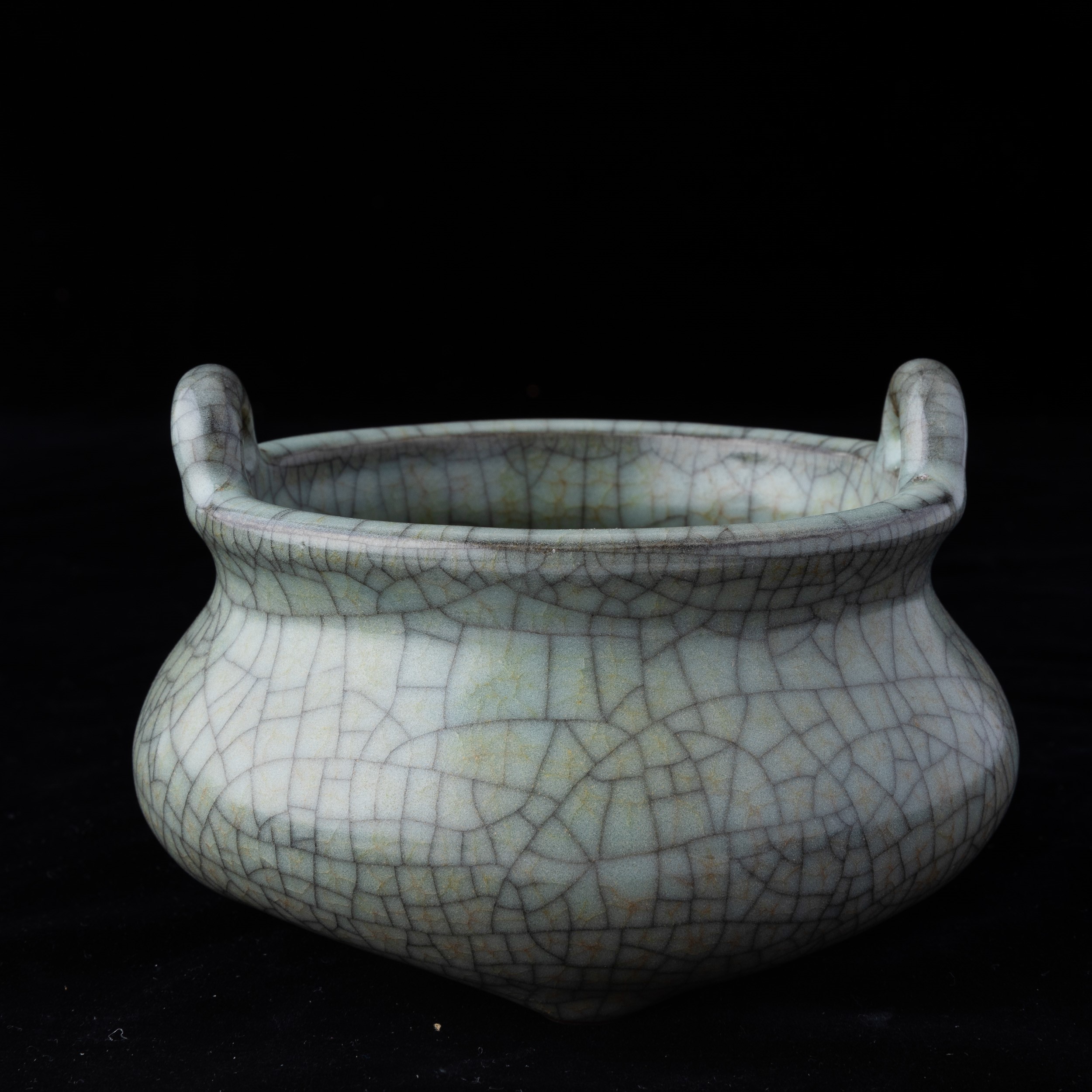 Incensiere in porcellana Guan color Celadon a doppia ansa, Cia, XX secolo