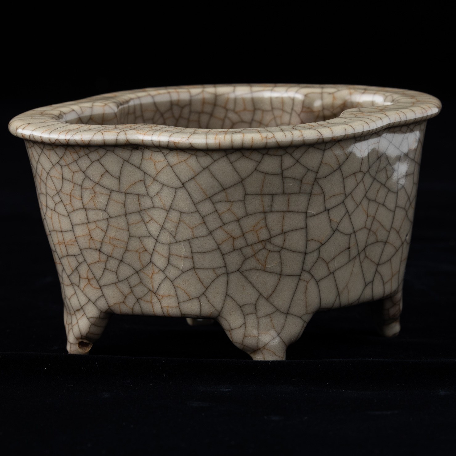 Piccola giardiniera polilobata in porcellana Guan color Celadon, Cina, Dinastia [..]