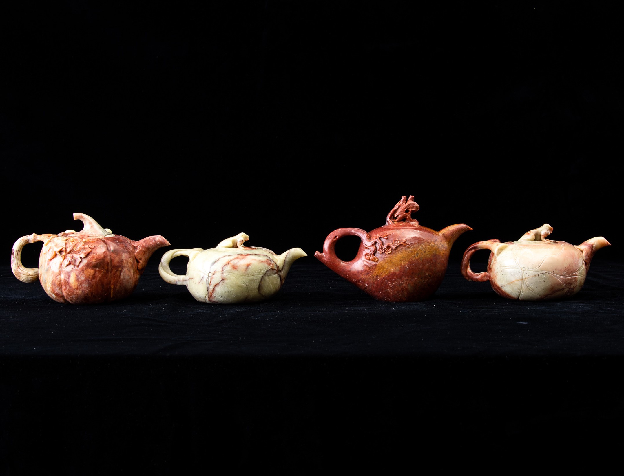 Quattro teiere scolpite in saponaria, Cina, XX secolo