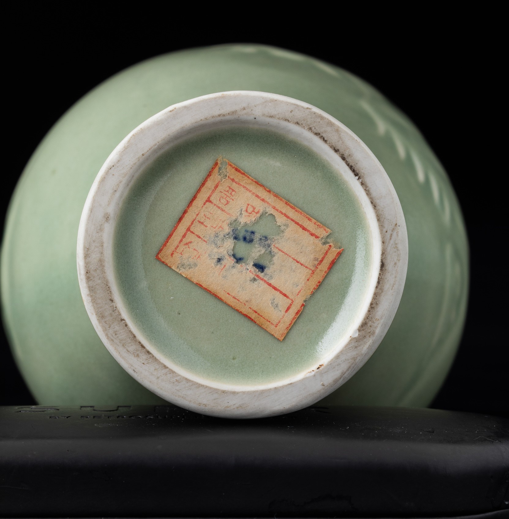Vaso Meiping in porcellana monocroma color Celadon con figura di fenice, Cina, XX [..]