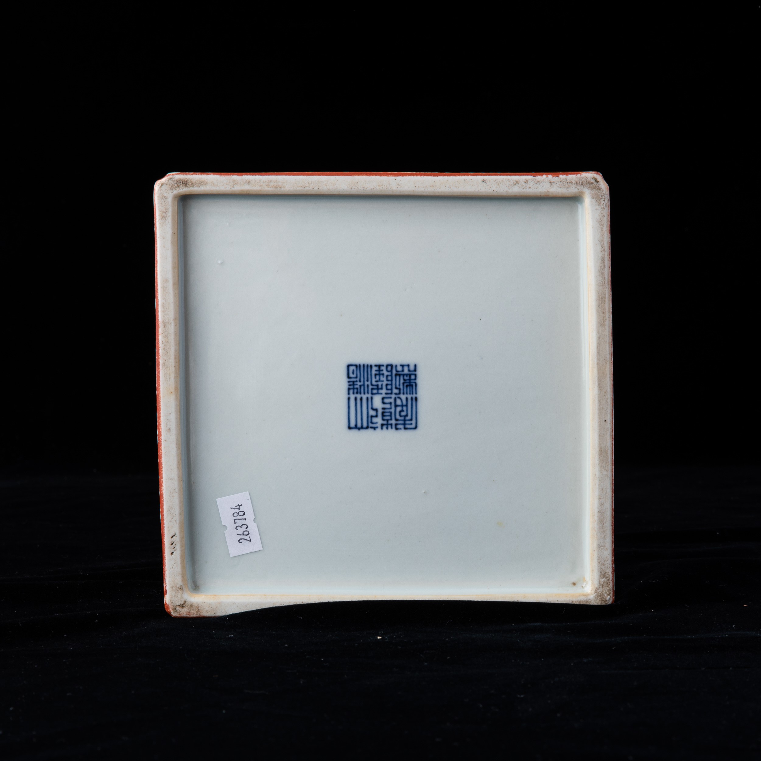 Vaso quadrato in porcellana con decori vegetali lumeggiati in color oro su fondo [..]