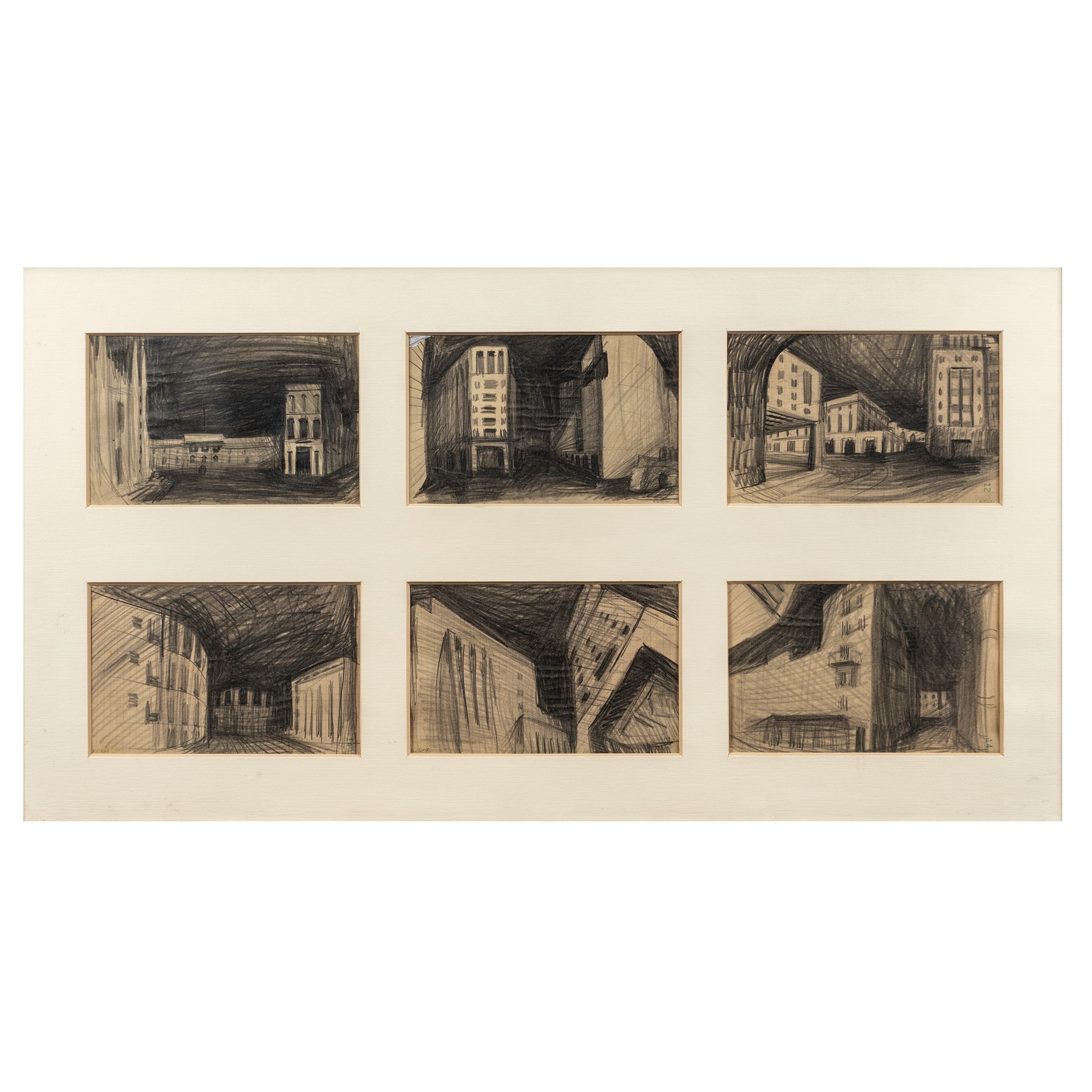 Isle of Wight 1968 Vedute di città, sei disegni matita su carta, firmati, entro cornice