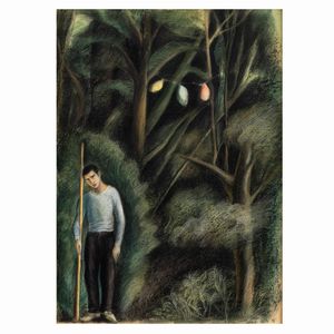 40x30 cm. Loreto 1939 Il viandante, 1997, pastello su carta, firmato e datato in basso a destra, entro cornic [..]