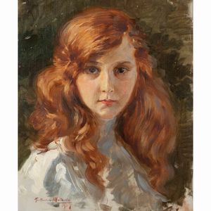 35x29 cm. Napoli 1881 - Londra 1963 La ragazza dai capelli rossi, olio su tela, 1917, firma e data in basso a [..]