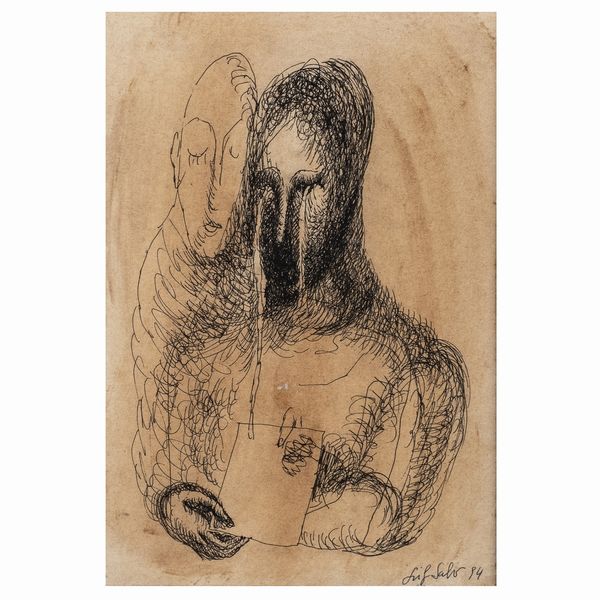 Argentina 1920 - Roma 2010 Lacrime per lettera, 1994, inchiostro su carta, firmato e datato in basso a destra, entro cornice