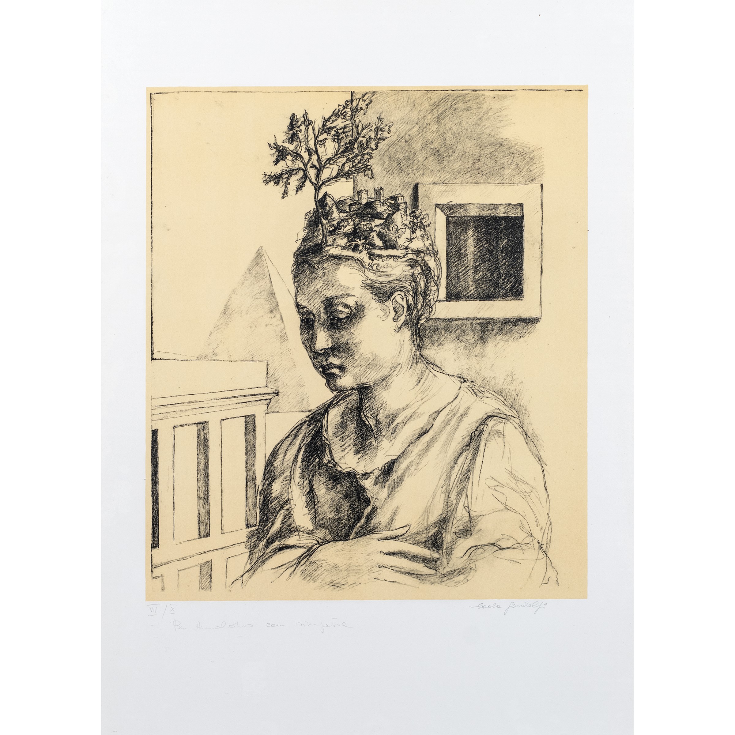 Roma 1949 Senza titolo, litografia es. VII/X, firmata in basso a destra, entro cornice