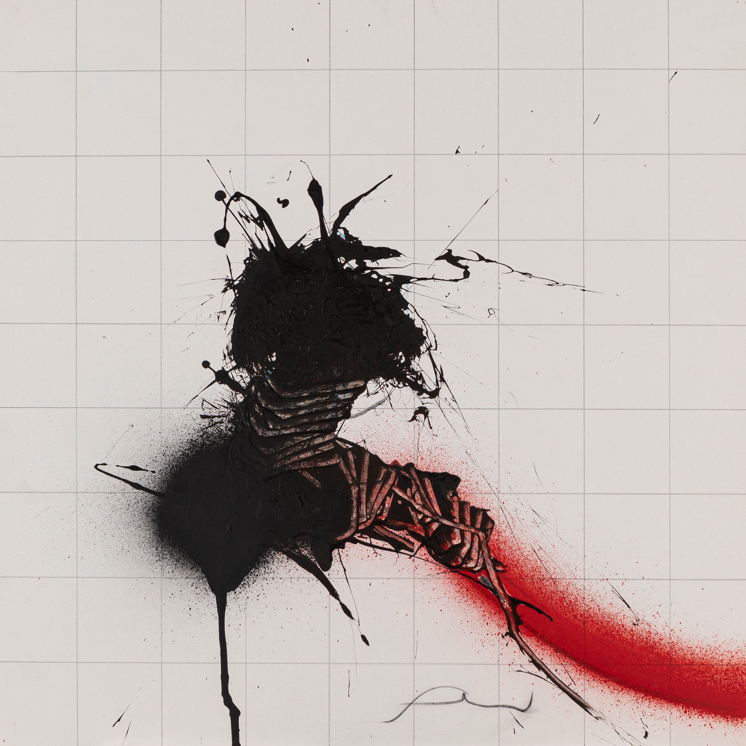 acrilico, grafite e pastello blu su cartone applicato su tavola, cm 45 x 45