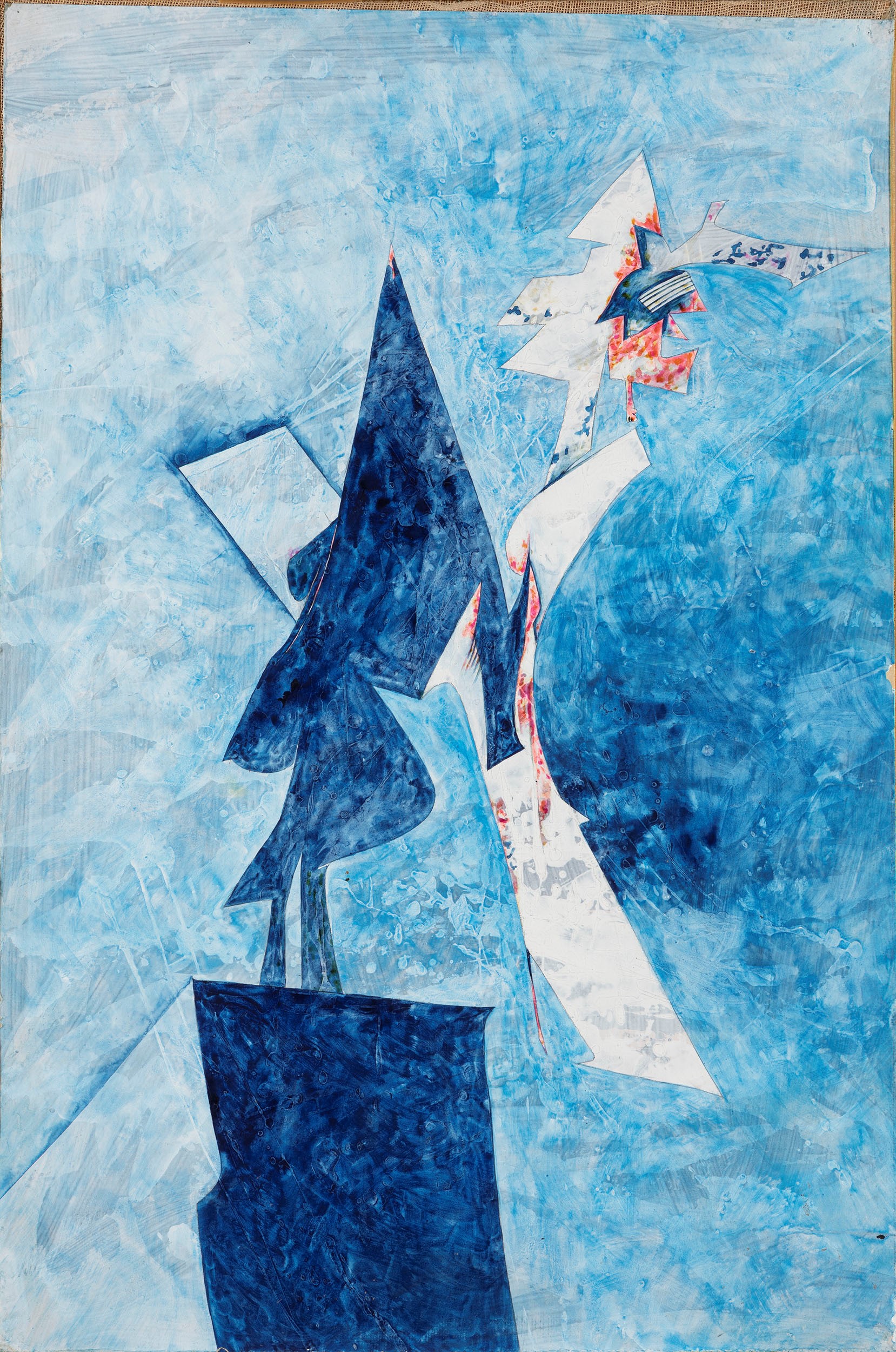 tecnica mista su carta applicata su tela, cm 74 x 50