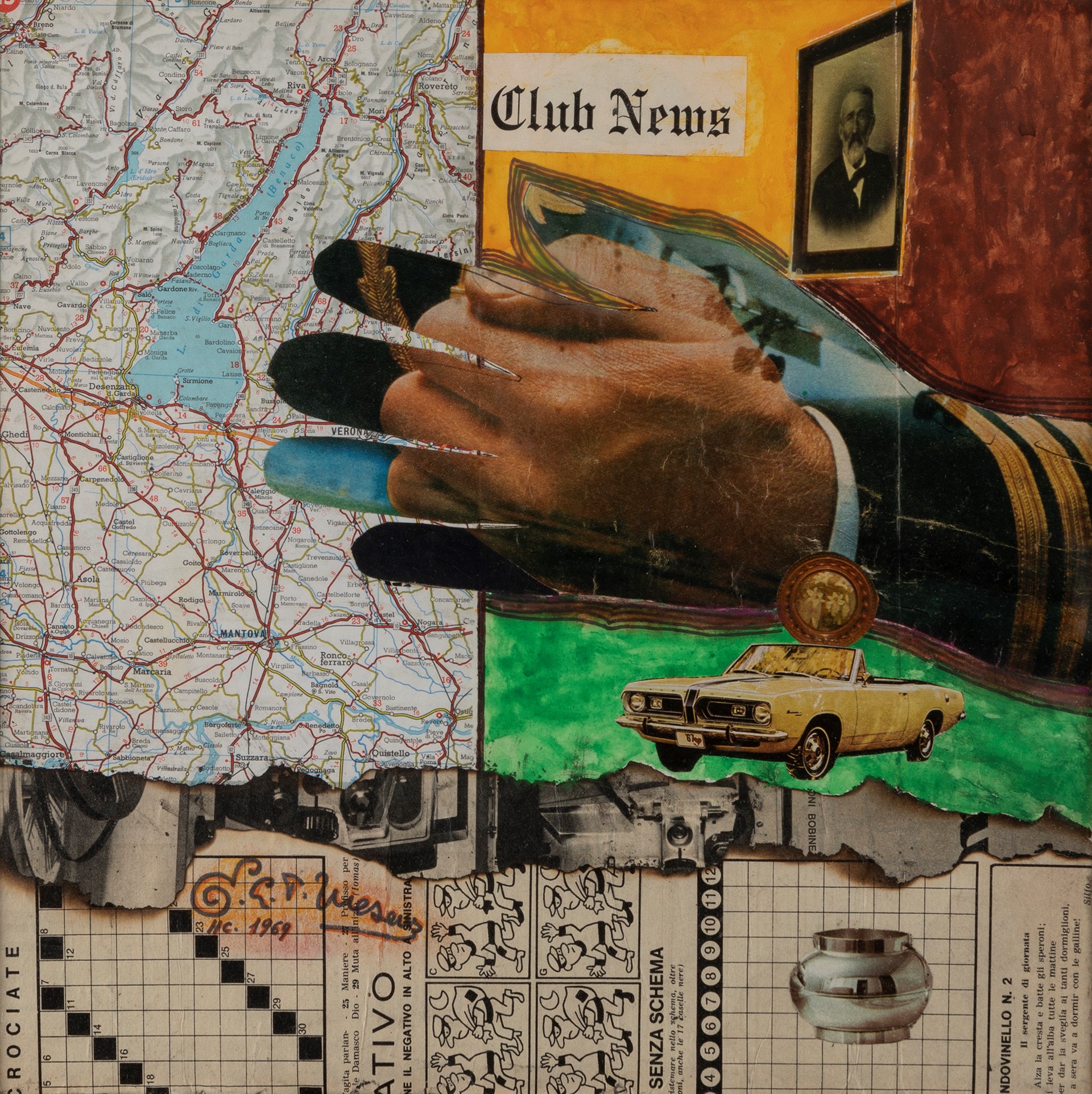 tecnica mista e collage su cartoncino, cm 32 x 32 ca