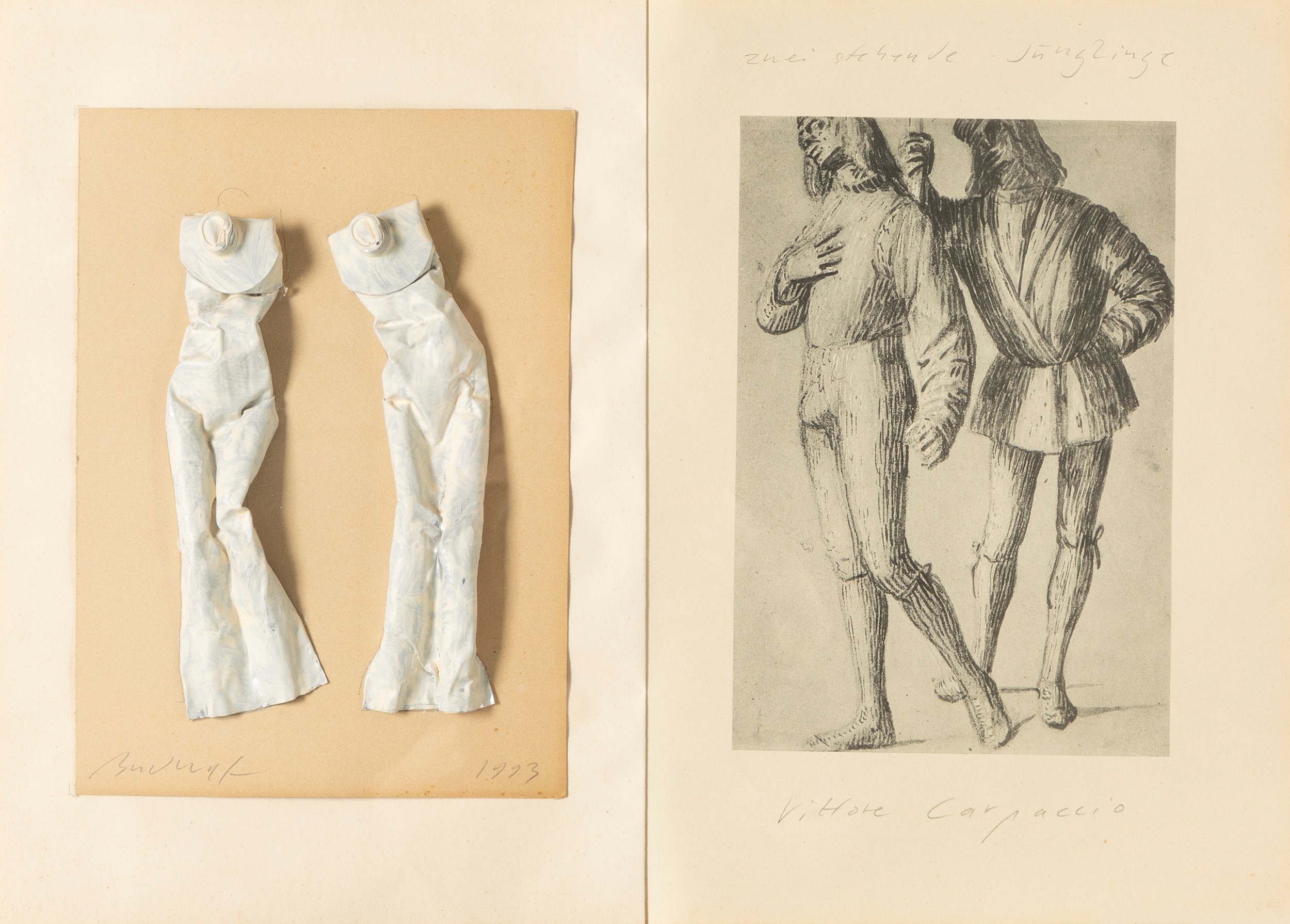 Titolato in alto a destra: Zwei stehende Juenglinge