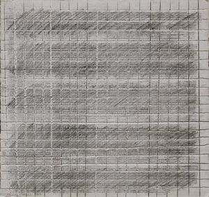 grafite su cartone inciso, cm 40x40 1974 Firma, data Paolo Masi, 74 (al retro)