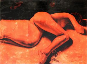 tecnica mista su tavola, cm. 63x43 2000 Titolo, firma Nuove anatomie, Galliani;timbro della Galleria Bonioni [..]