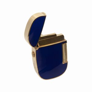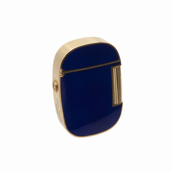 Patek Philippe, accendino in oro giallo 18kt con smalto blu. Peso 109,6 gr