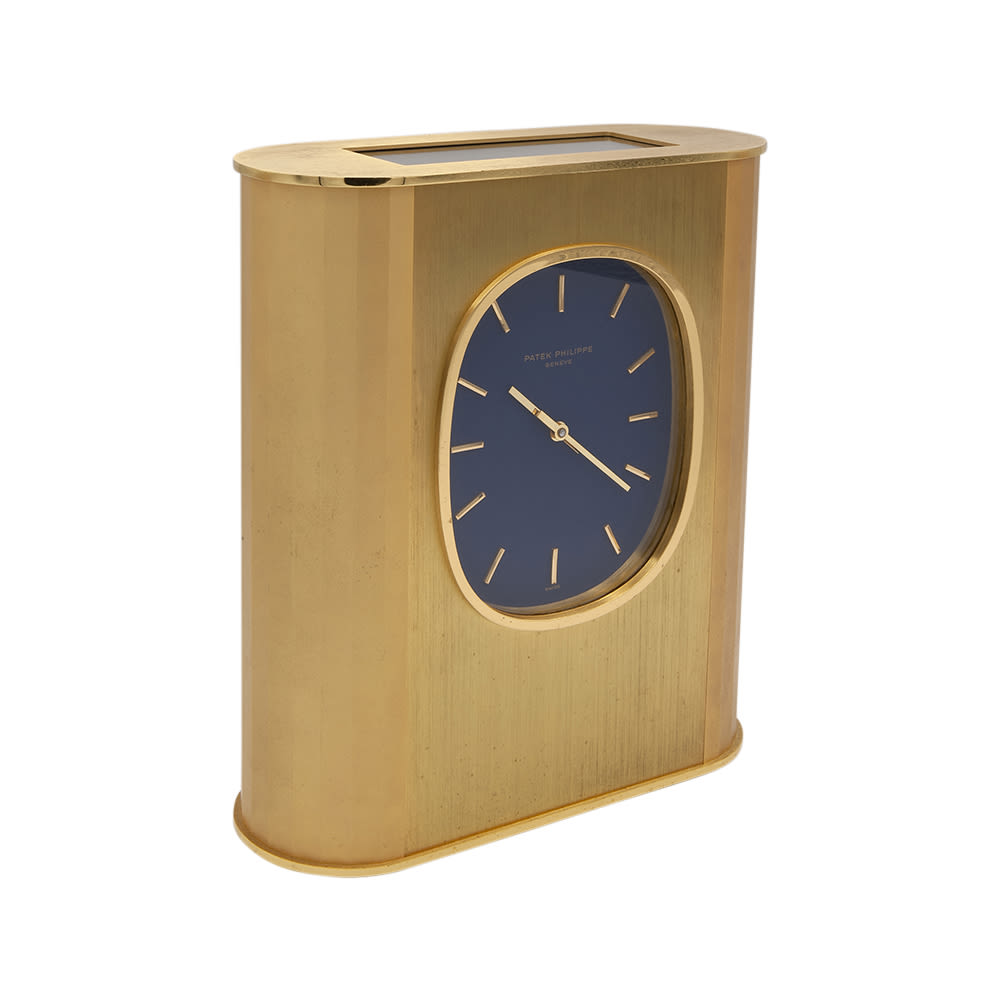 Patek Philippe, Orologio da tavolo. Quadrante blu. forma rettangolare, 20 x 18 x 7 cm, materiale ottone, carica quarzo, service patek philippe 2021