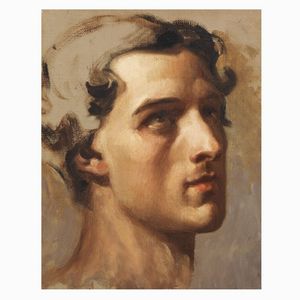 Attribuito a Jean-Hippolyte Flandrin (1809-1864) STUDIO ACCADEMICO TESTA DI GIOVANE olio su tela, cm 29,5x23 [..]