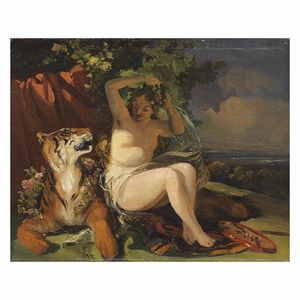 Scuola italiana, sec. XIX DONNA CON TIGRE olio su carta applicata su tela, cm 24x29 datato "1839" in [..]