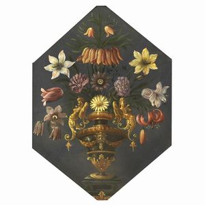 Scuola romana, sec. XVII VASO DI FIORI olio su lavagna ottagonale, cm 61x44,5 Roman school, 17th century FLOWERS [..]