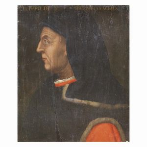 Scuola fiorentina, sec. XVI RITRATTO DI FILIPPO BRUNELLESCHI olio su tavola, cm 57x45,5 Florentine school, 16th [..]