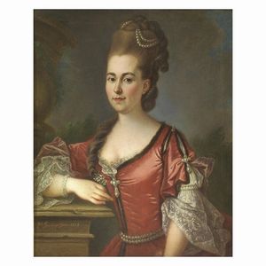 Pierre Jouffroy (attivo tra il 1742 e il 1776) RITRATTO DI GENTILDONNA olio su tela, cm 82,5x66 firmato e datato [..]