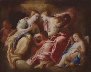 Attribuito a Francesco Botti (Firenze 1640-1711) ALLEGORIA DELLA FORTEZZA E DELLA TEMPERANZA olio su tela, cm [..]