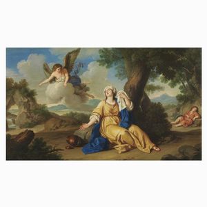Scuola romana, sec. XVIII AGAR E L'ANGELO olio su tela, cm 41,5x71,5 Roman school, 18th century AGAR AND THE [..]