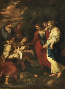 Scuola romana, fine sec. XVII-inizi sec. XVIII RITROVAMENTO DI MOSÈ olio su tela, cm 133,5x95,5 Roman [..]