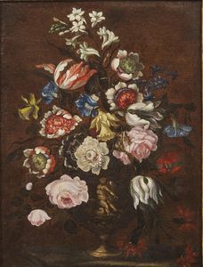 Scuola veneta, sec. XVII VASI DI FIORI coppia di dipinti, olio su tela, cm 63x50 (2) Venetian school, 17th [..]