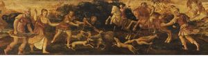 Scuola veneta, sec. XVII SCENA DI CACCIA olio su tavola, cm 34,5x192 Venetian school, 17th century HUNT SCENE [..]