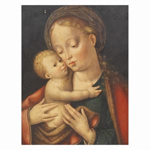 Scuola fiamminga, sec. XVI MADONNA CON BAMBINO olio su tavola, cm 25x19 Flemish school, 16th century MADONNA [..]