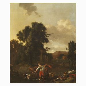 Seguace di Pieter van Bloemen, sec. XVIII CONTADINO E ANIMALI olio su tela, cm 68,5x93,5 Follower of Pieter [..]