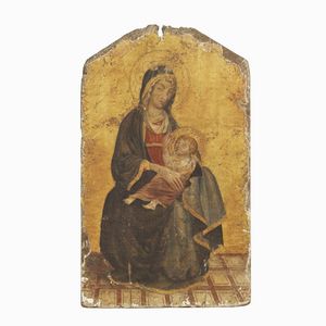 Maniera della pittura toscana del sec. XIV MADONNA COL BAMBINO olio su tavola fondo oro, cm 61x34,5 Manner [..]